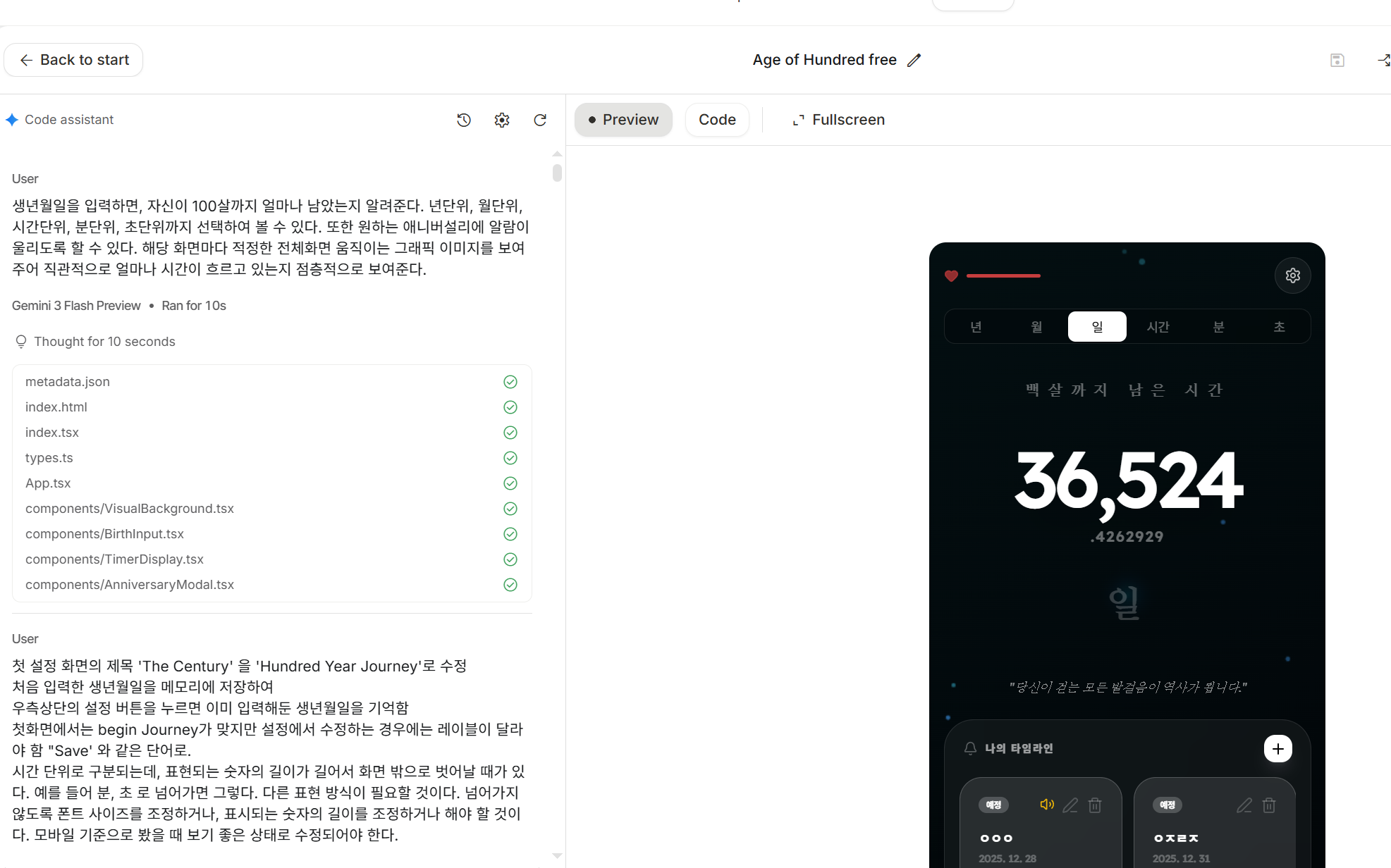- 100살까지 남은 시간 카운트다운 하는 앱