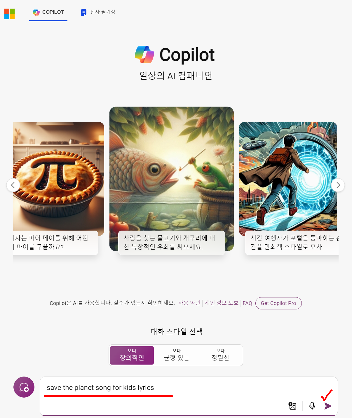 1. 코파일럿 사이트에 접속합니다.