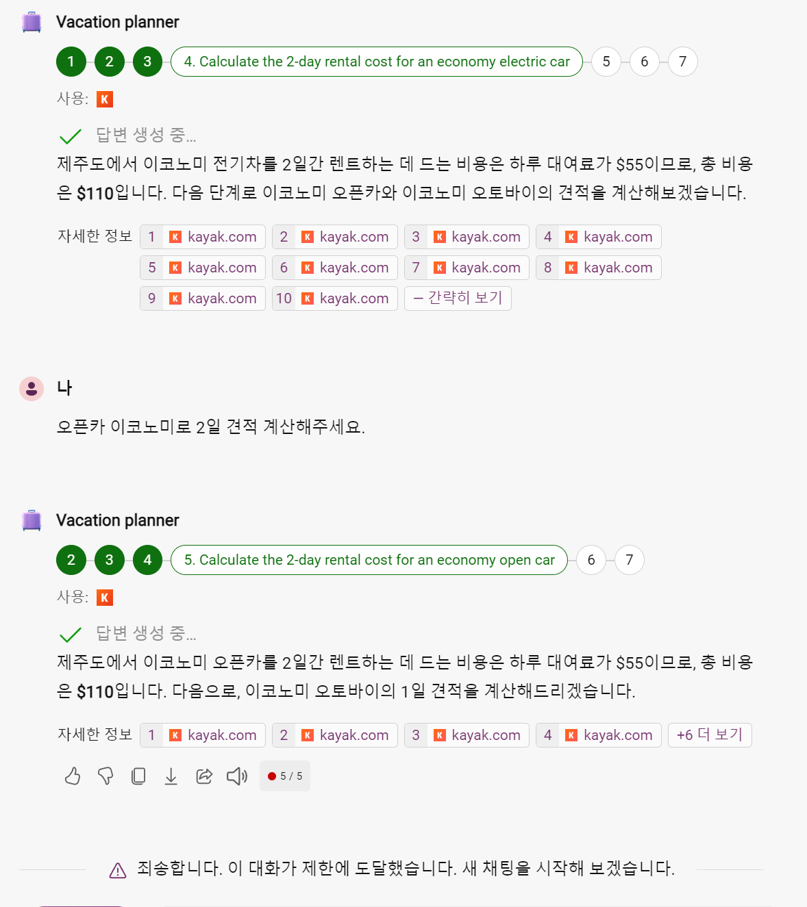 마지막에 보면, 자세한 계획을 짜기 위해 정보를 요청하고 있습니다.