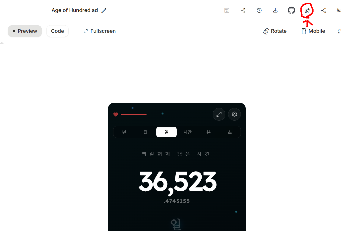 구글 ai 스튜디오에서 우측 상단의 로켓 모양을 클릭하면 디플로이 창이 뜬다.