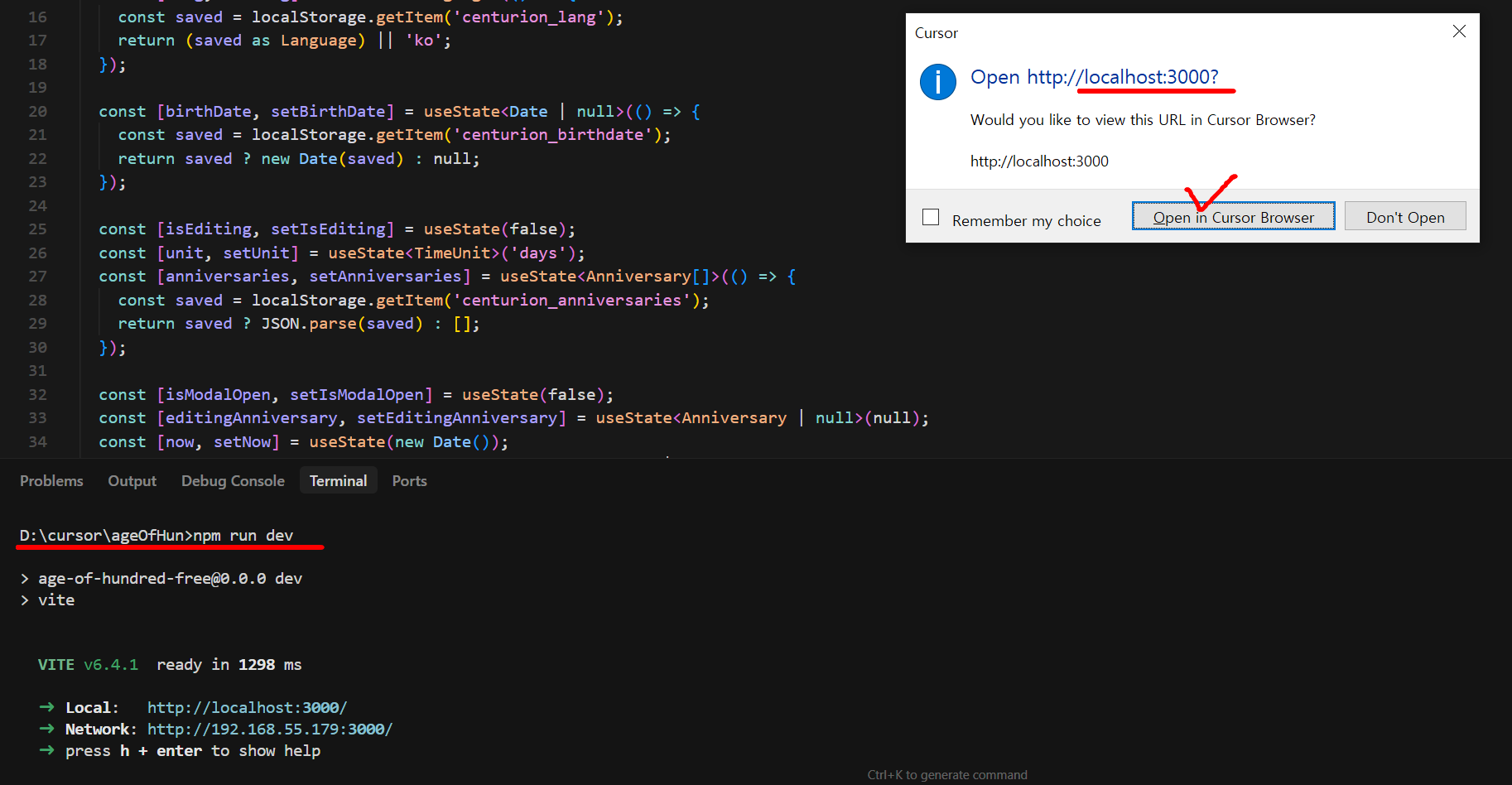 셋째 실행을 위해서는 npm run dev 라고 콘솔에 입력하라는 말이다.