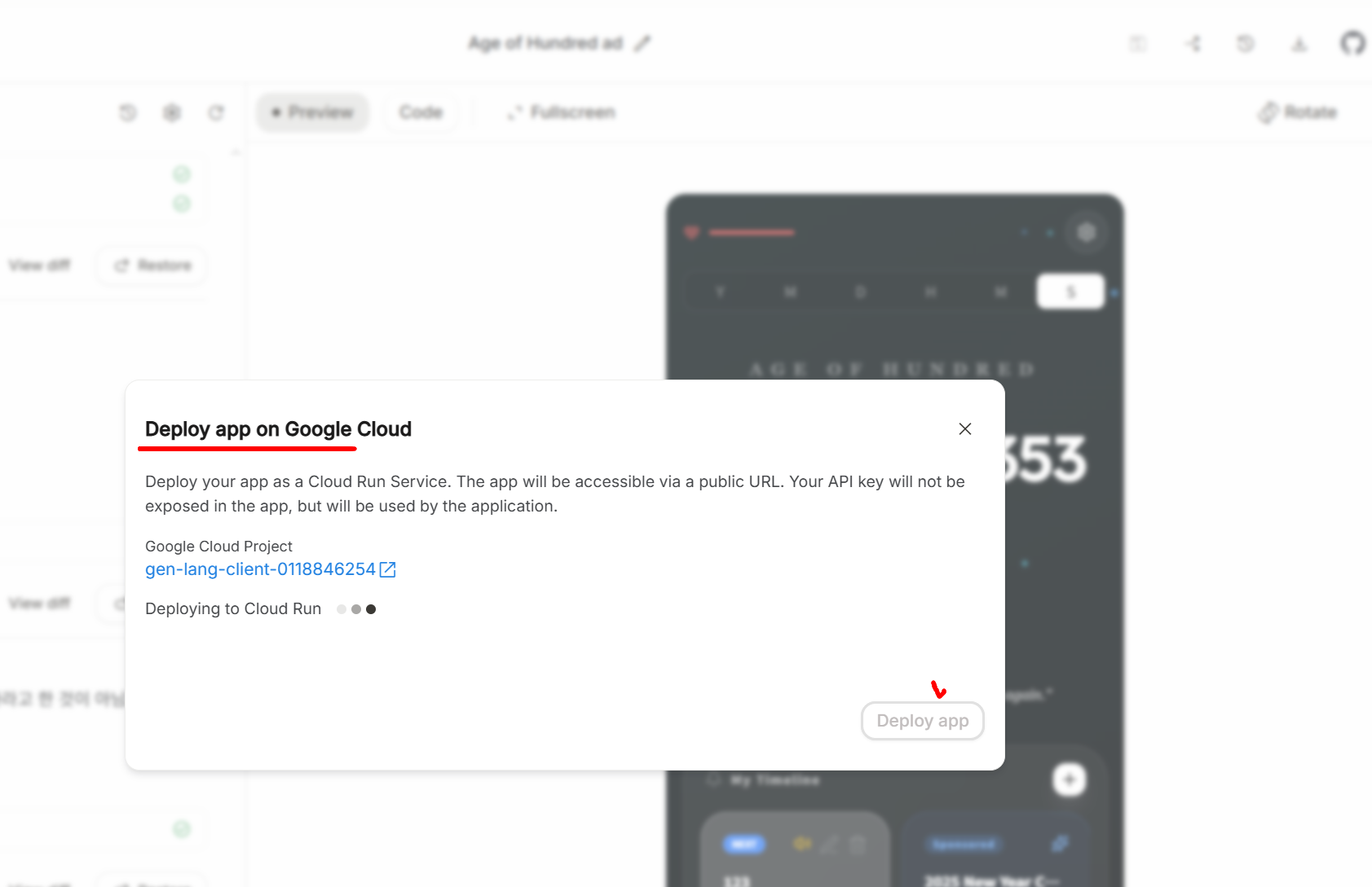 - 완성되었다면, deploy눌러서 구글 클라우드 서비스를 통해 배포가능하며,