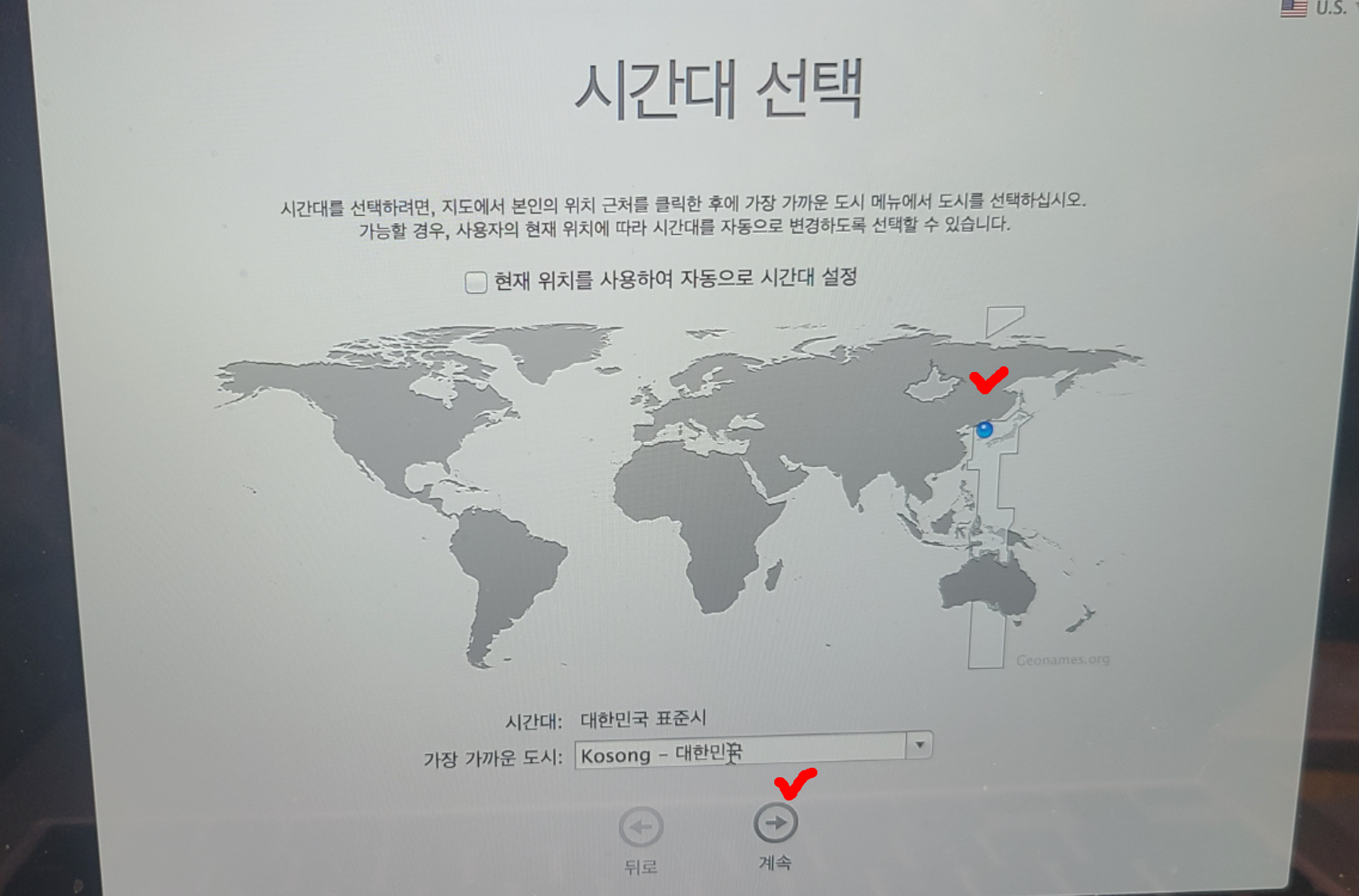 - 직접 마우스 움직여 우리나라 경도를 선택하면 '대한민국' 선택 가능