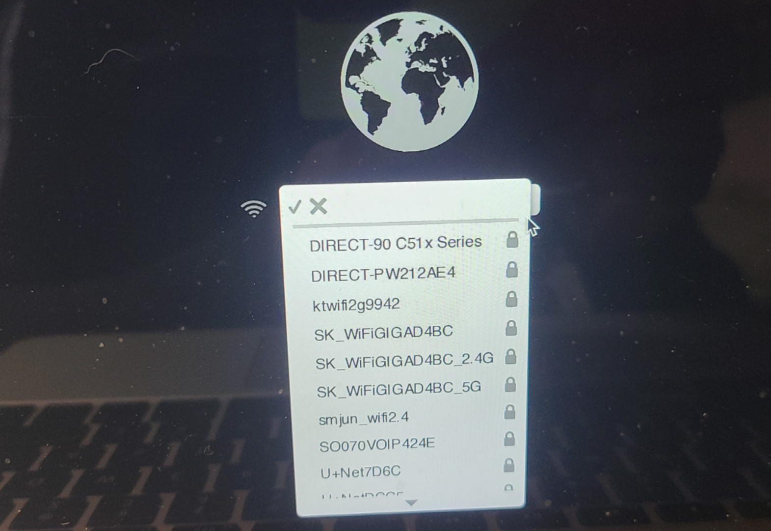 1. 와이파이 연결창이 제일 먼저 뜹니다. (  보드 교체후 최초 복구 시 )