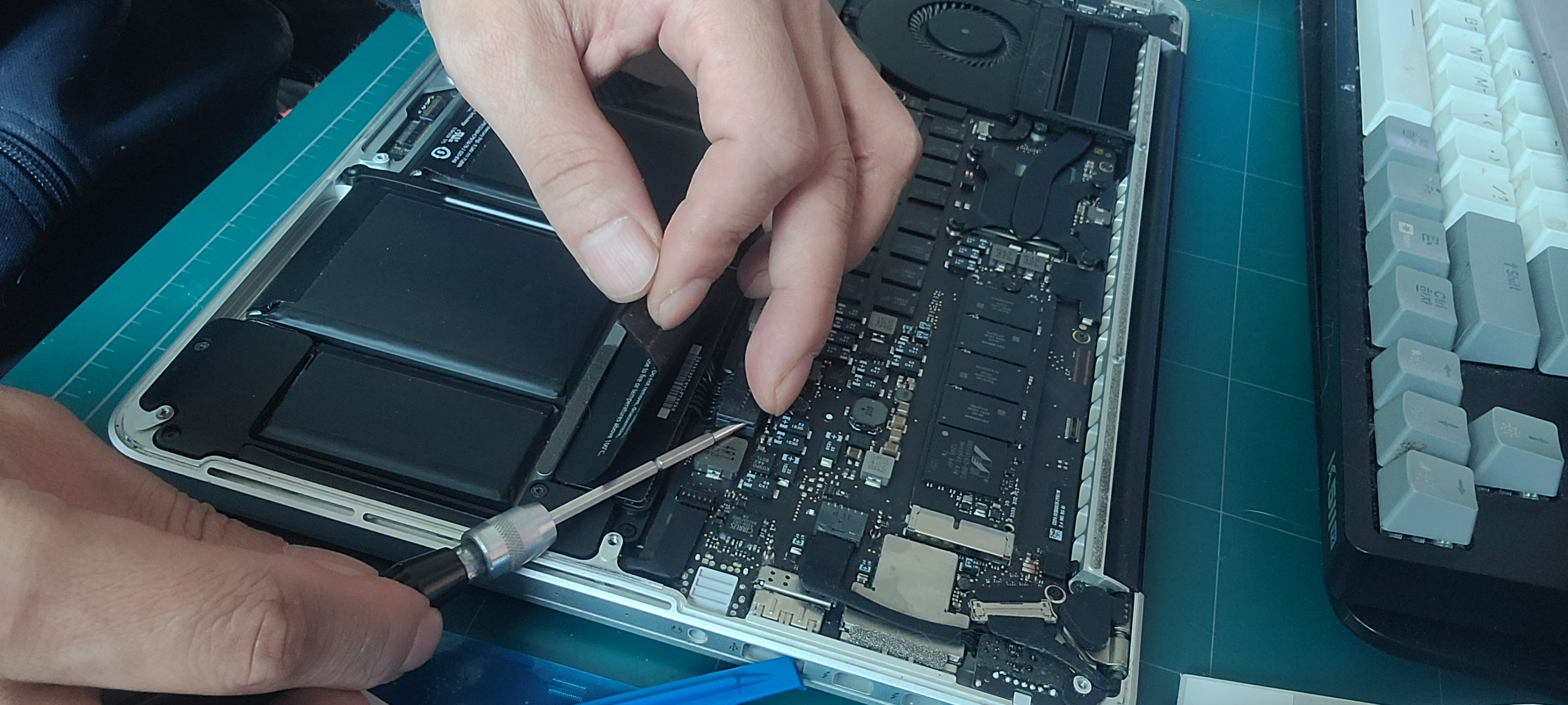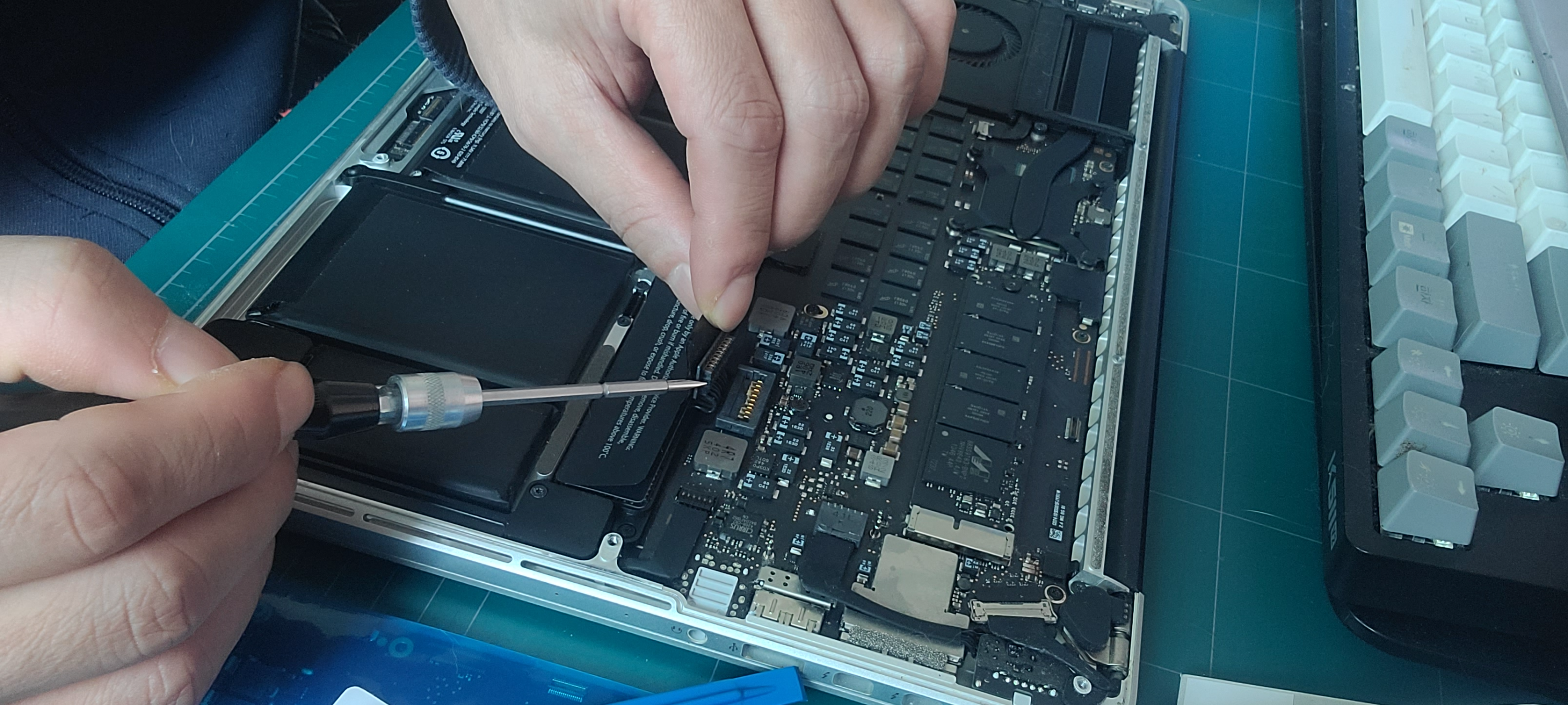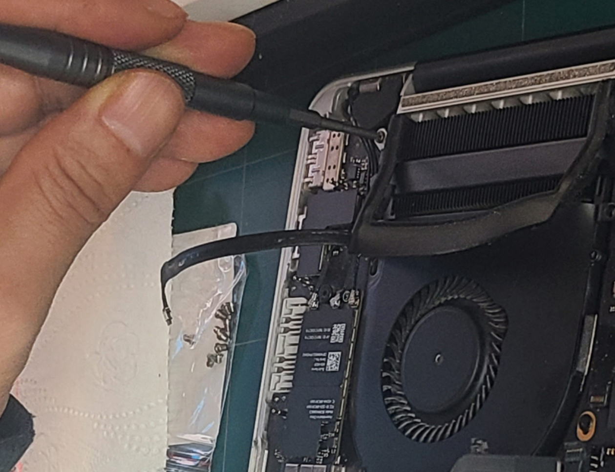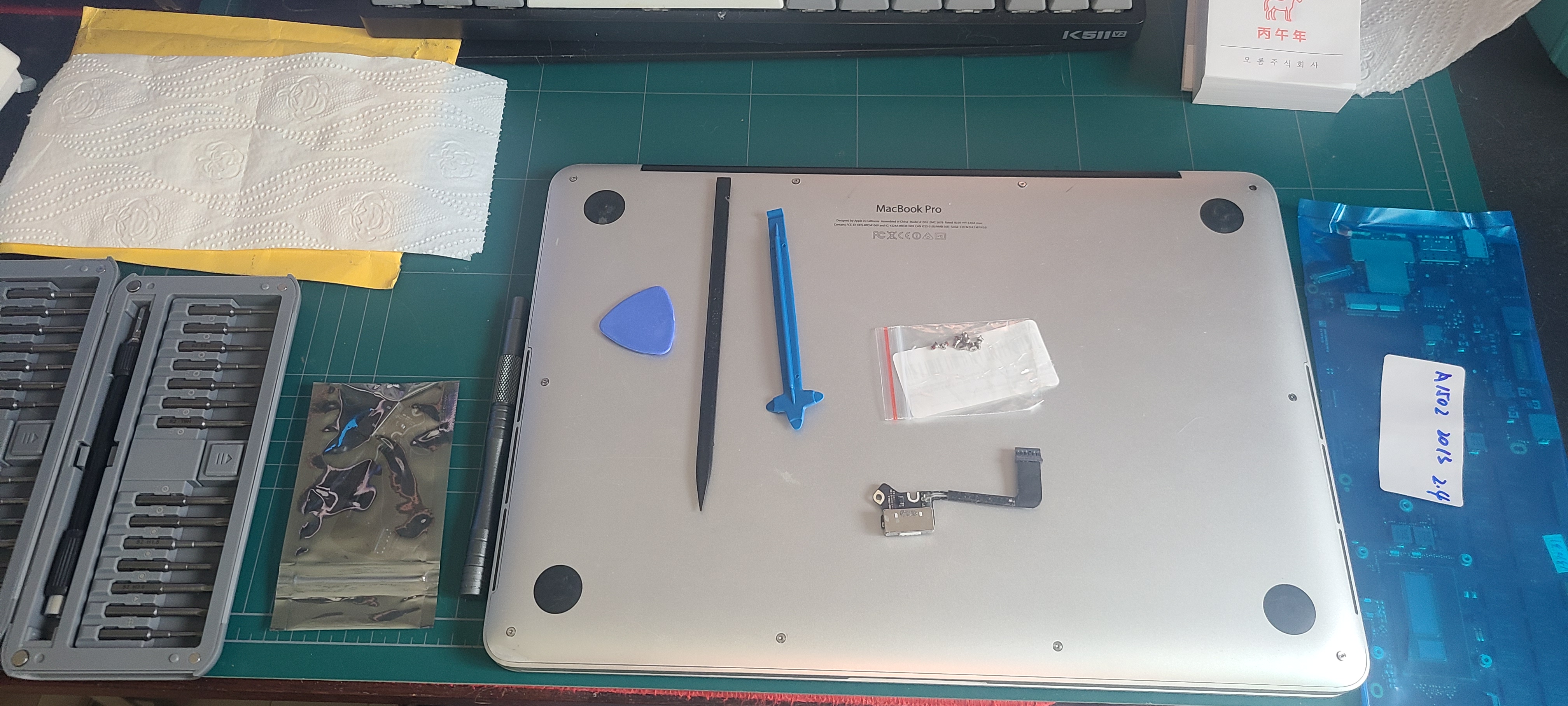 맥북 분해 후 보드 교체, 재조립 후 전원 확인