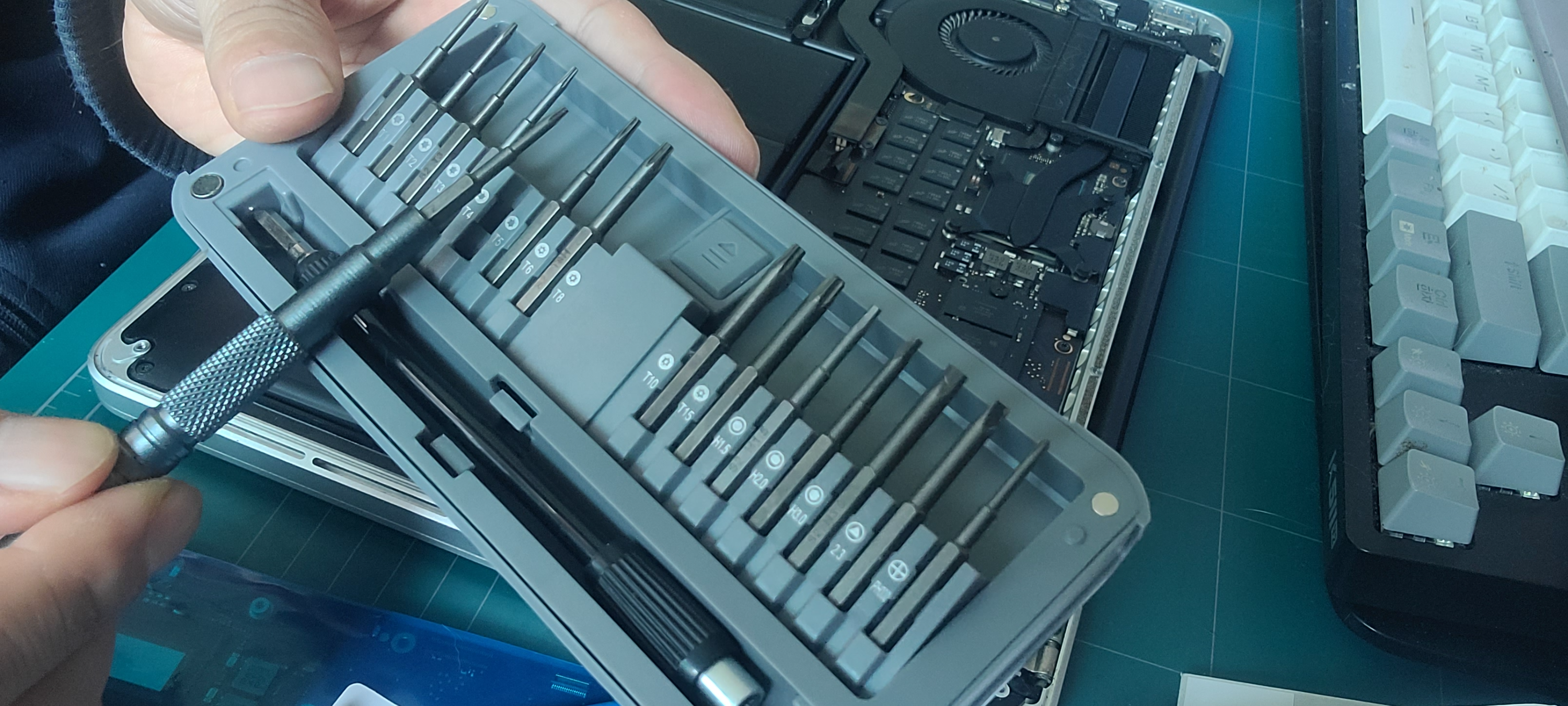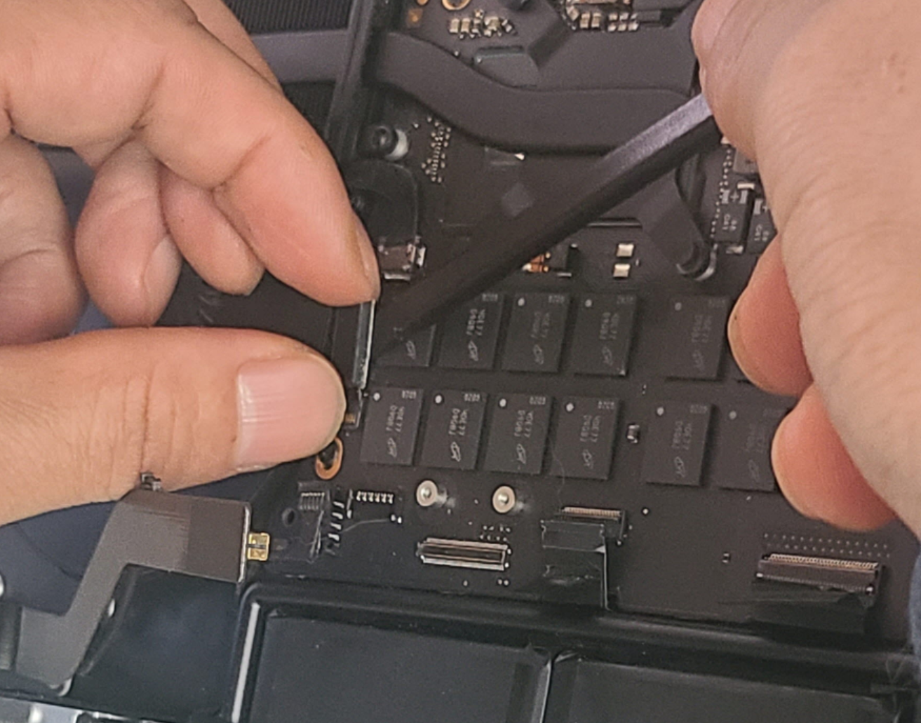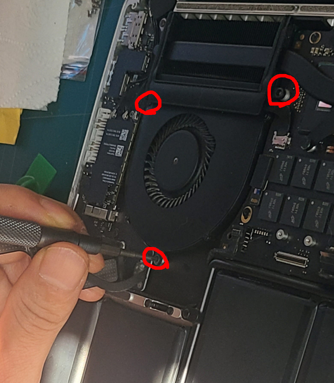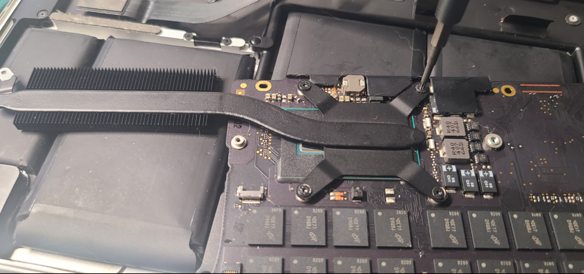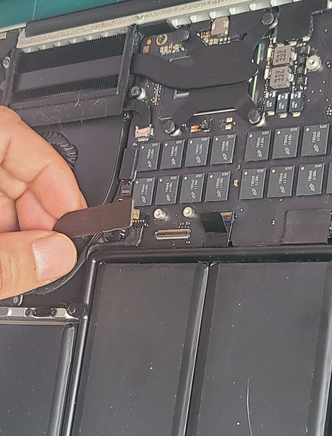 맥북 분해 후 보드 교체, 재조립 후 전원 확인