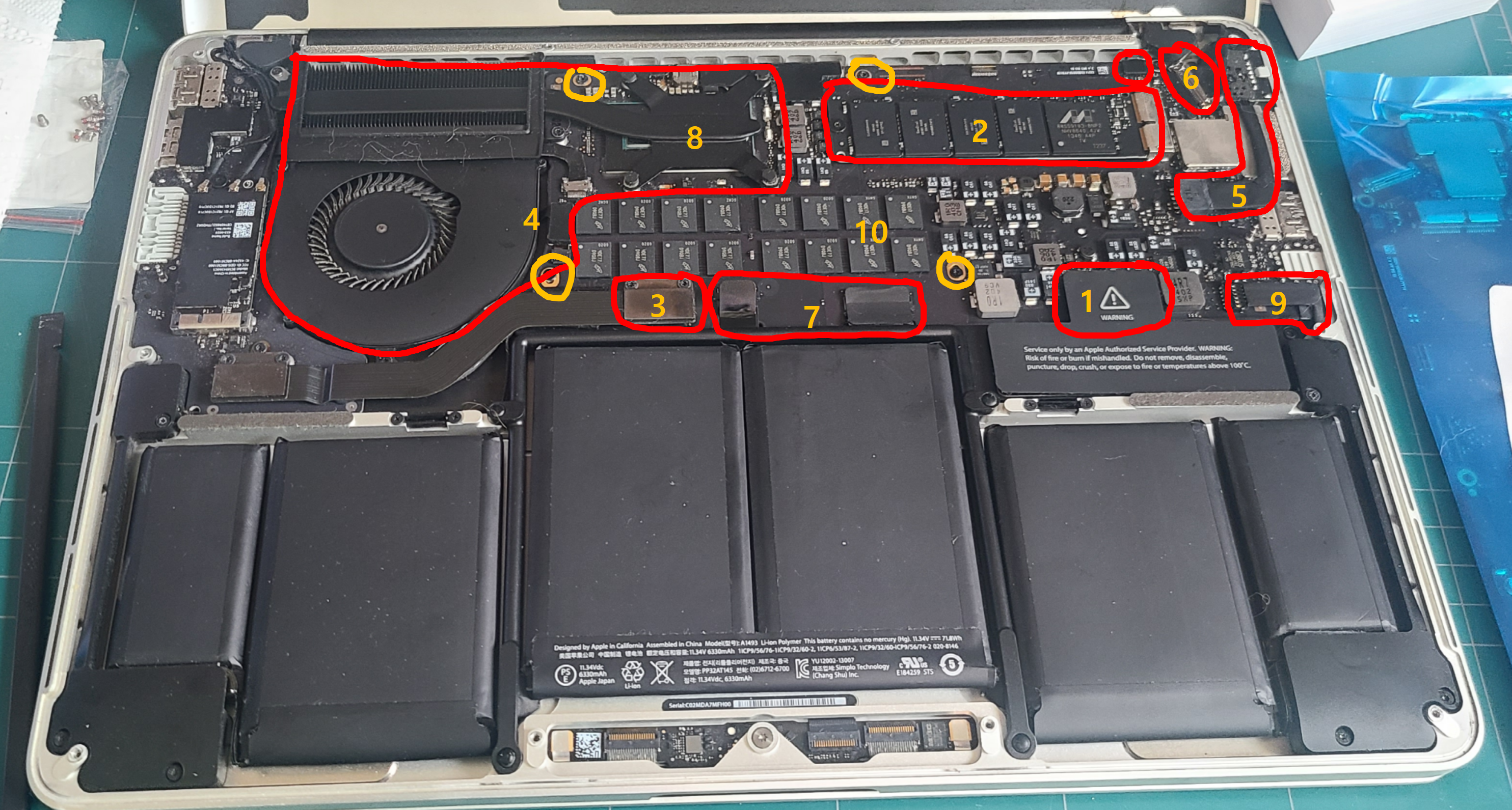 오래된 맥북 프로 13" 2013 late 보드 교체 및 OS설치 1. 부품 구매2. 분해 및 교체, 결합3. 초기 부팅 방법4. OS 업그레이드 제 맥북의 상태 2013년에 탄생한 오래된 맥북 프로입니다.음료(물)을 엎질러서