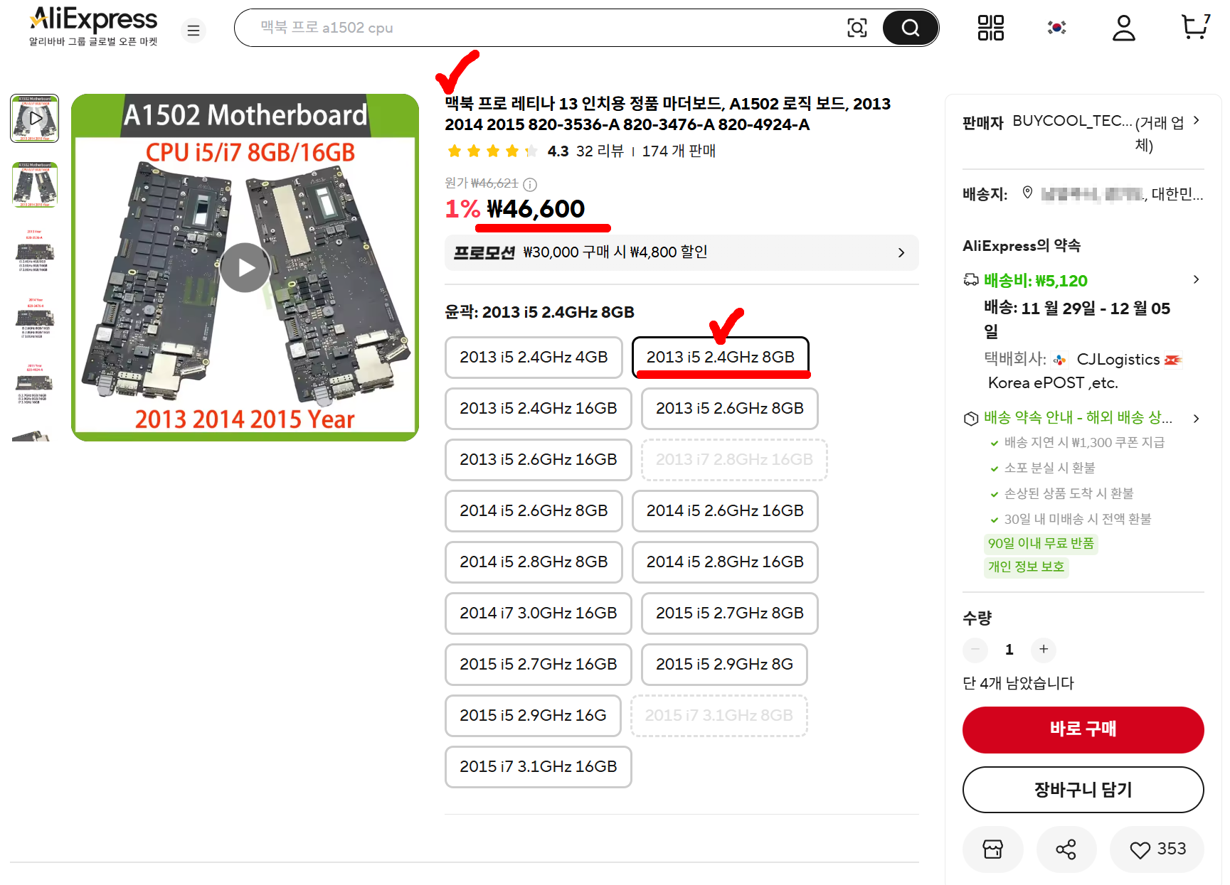 - 여러 사양이 있지만 원래 사양에 맞춰서 최대한 저렴한 보드를 선택했음.
