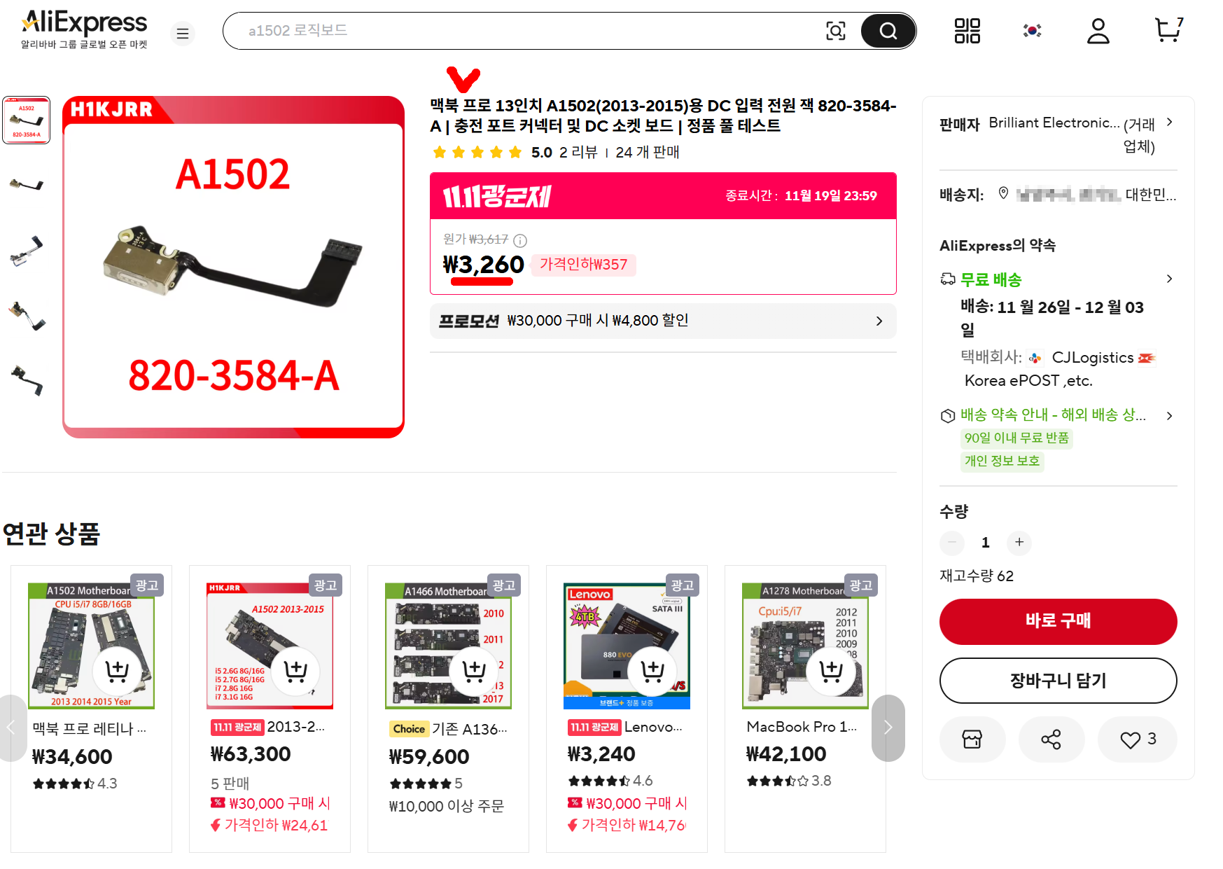 맥북 보드 교체를 위한 부품 구매