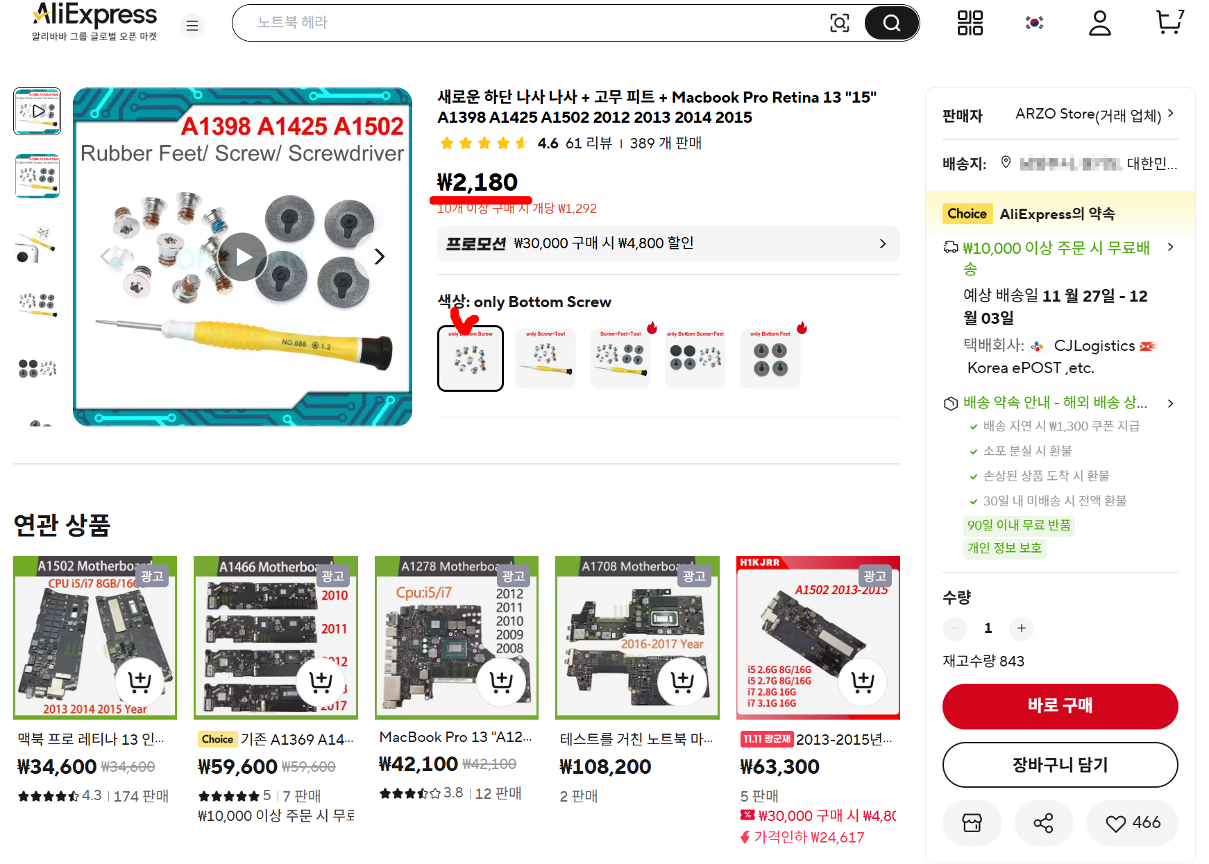 - 별 드라이버는 제외하고, 나사만 구성하는 제품으로 저렴하게