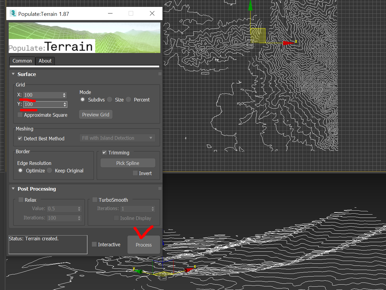 @등고선_500 선택 후, 스크립트 실행, Grid : 100x100 > Process!