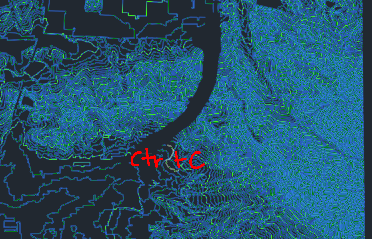 1) Property 창에서 등고선에 해당하는 2개의 레이어를 선택 후, 반전 선택