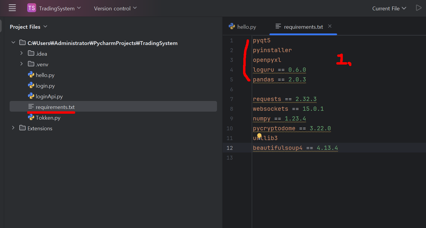 - 루트폴더에 requirements.txt 파일을 생성합니다.