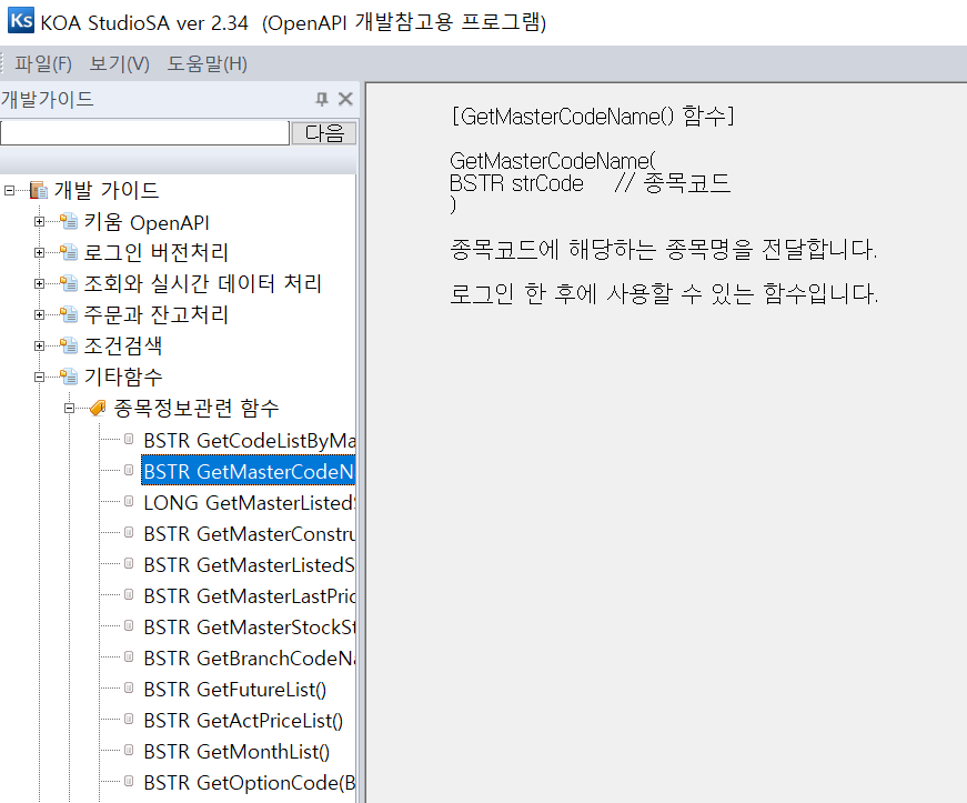- 기타함수 / 종목정보 관련 함수