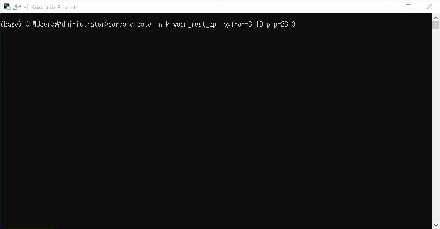 conda create -n kiwoom_rest_api python=3.10 pip=23.3