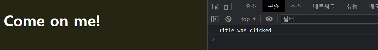 아래와 같이 문자열이 있고, 우리는 이것을 클릭하면 우측 콘솔에 Title was ckicked라는 문구를 출력하라고 할 겁니다.