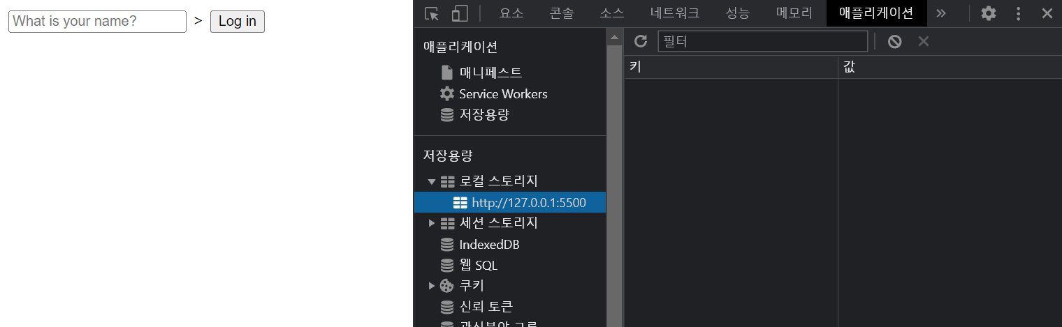 그런 다음 입력필드에 무언가 입력하고 enter를 누르면 로컬 스토리지에 저장되는 것을 확인할 수 있다.