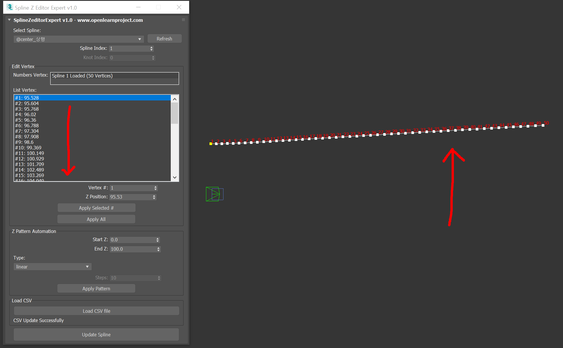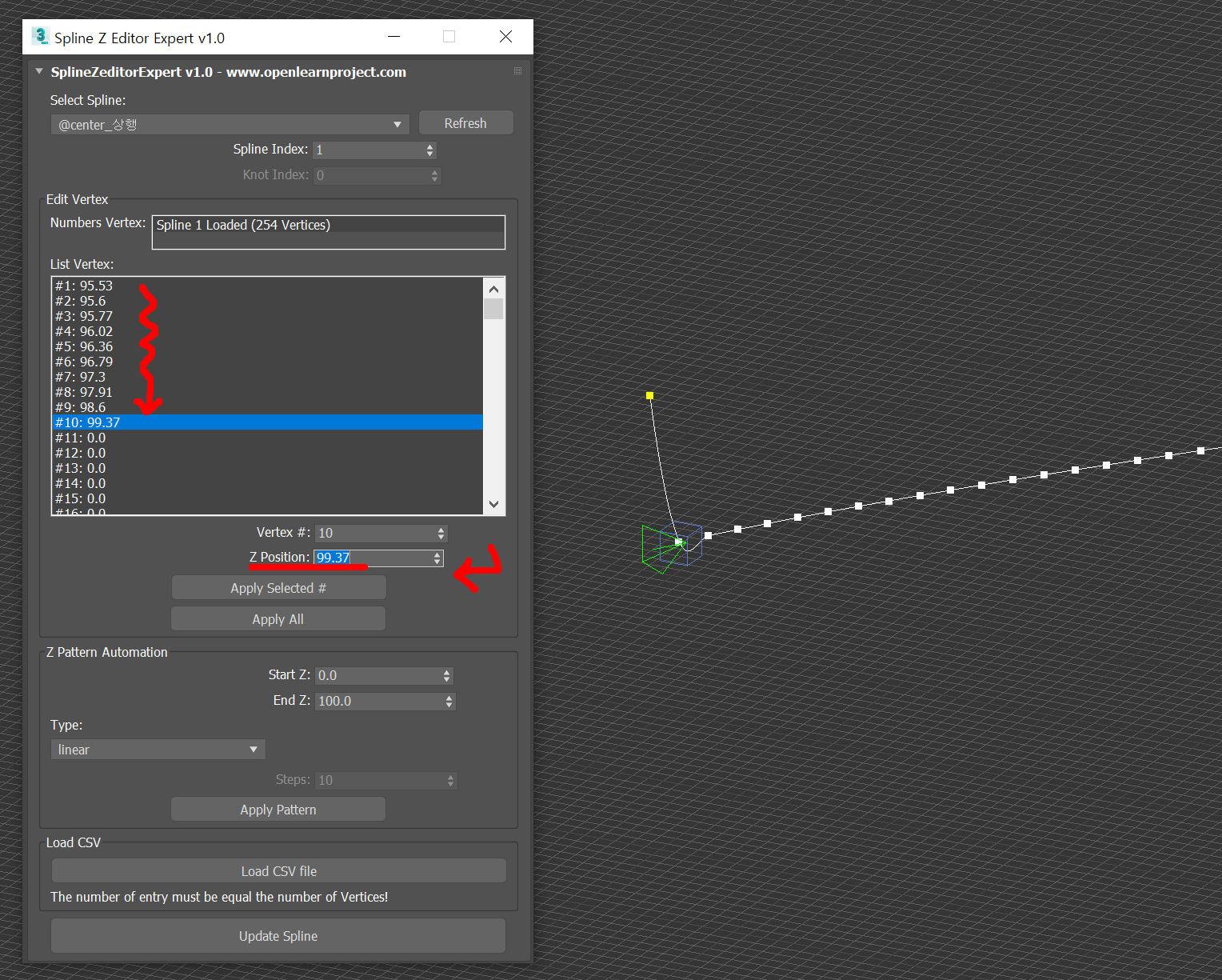 스플라인내 버텍스들의 Z값을 쉽고 빠르게 한번에 변경할 수 있는 맥스 스크립트