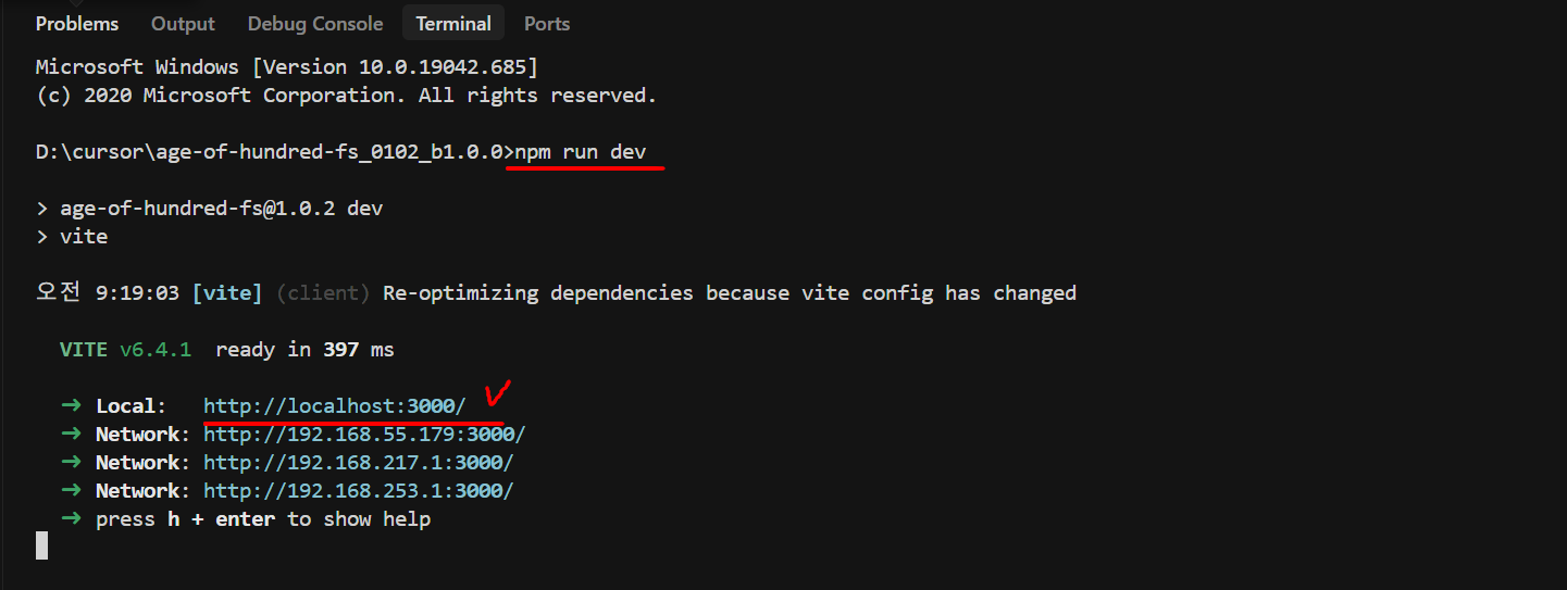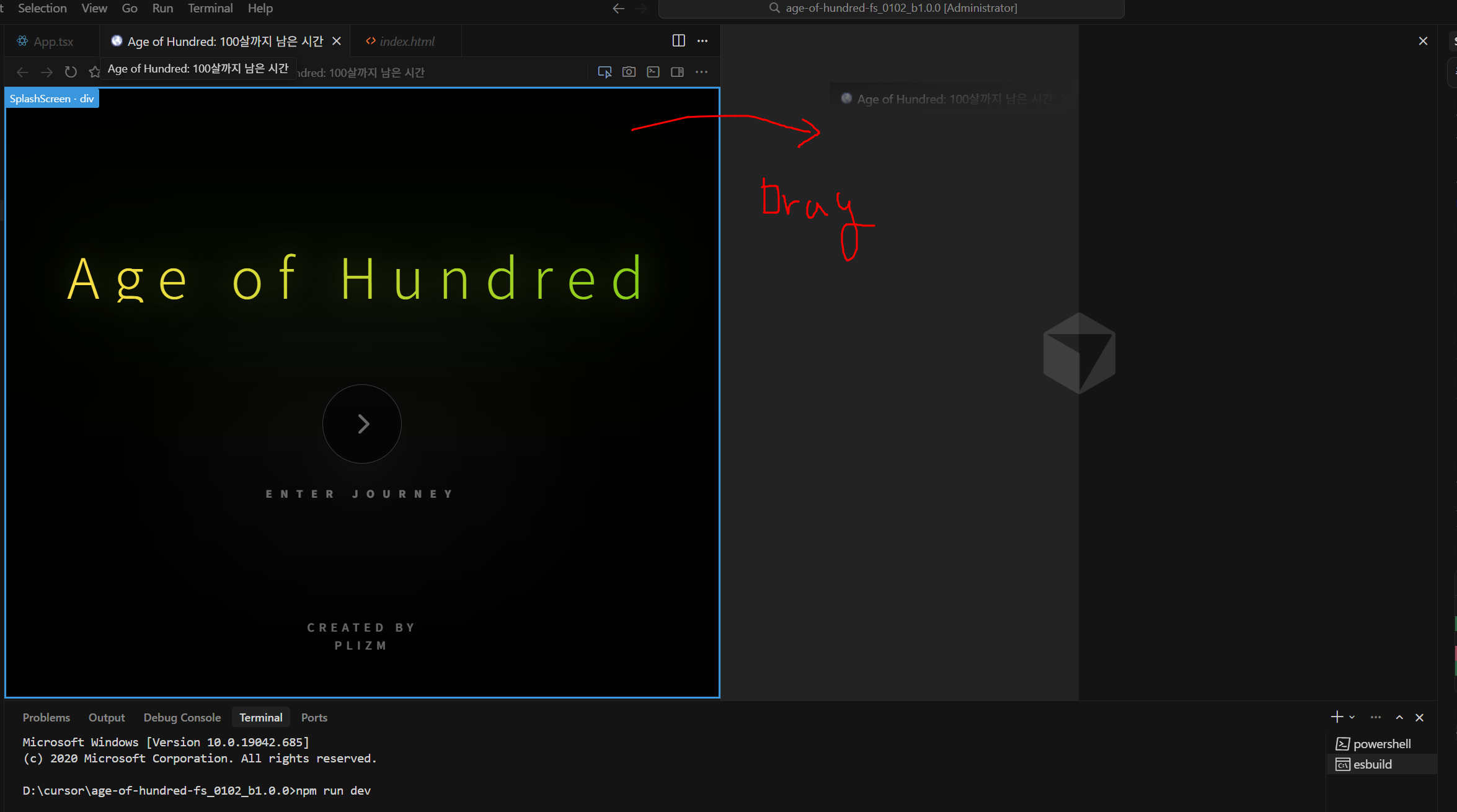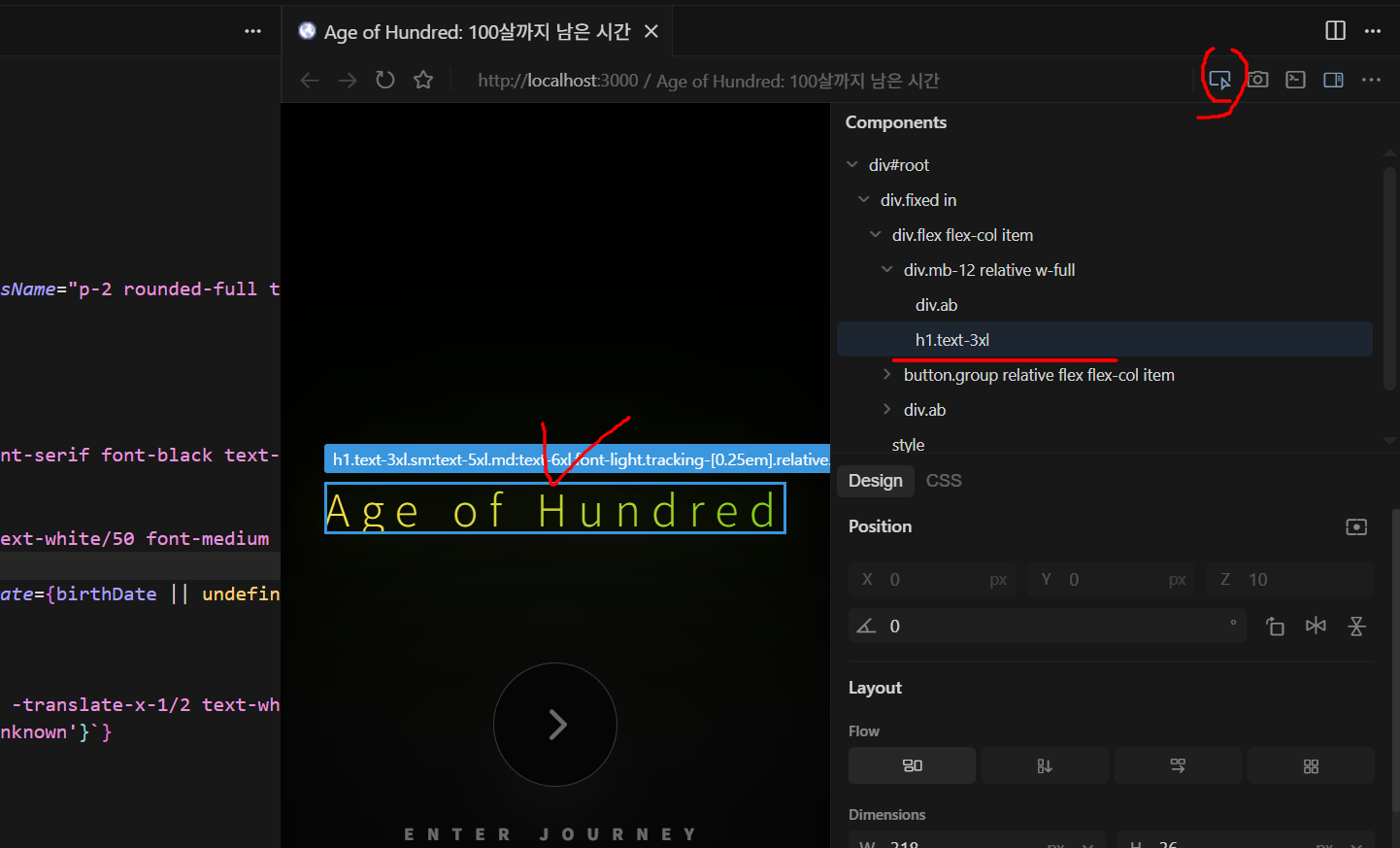 1. npm run dev / open cursor in browser 선택 / Inspector 창 열기
