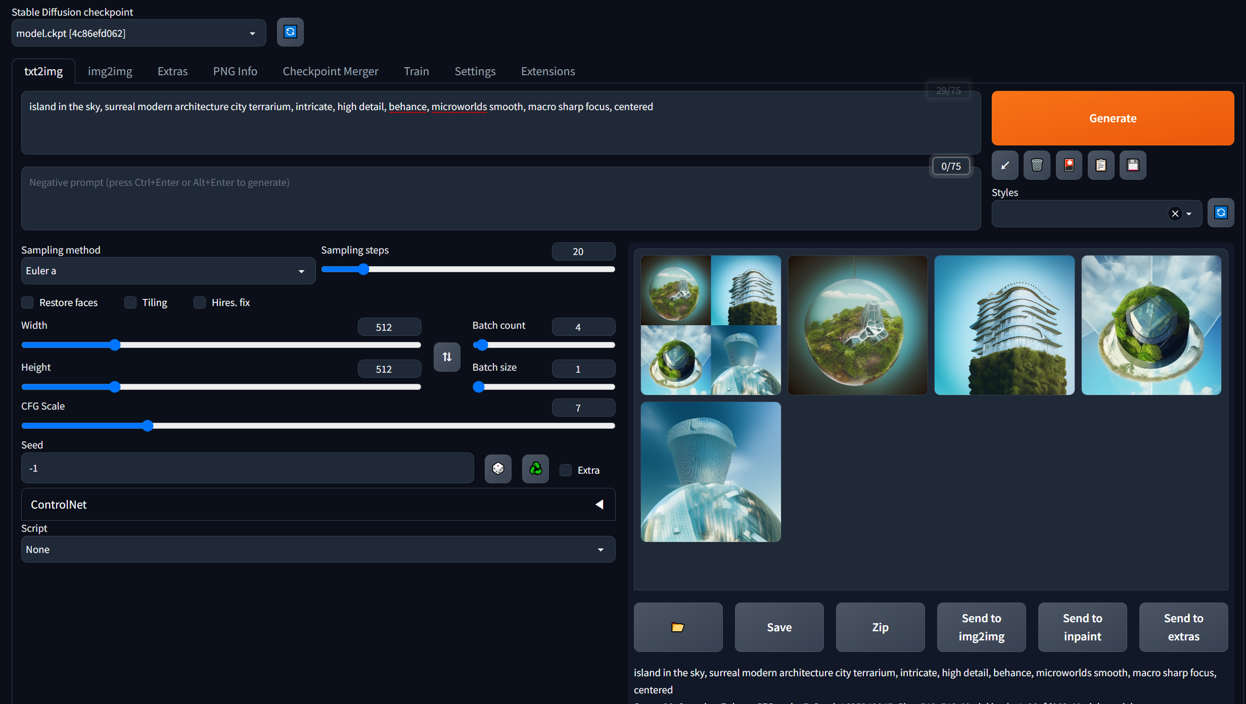 Prompt의 내용을 복사해서 내 Stable Diffusion의 Prompt에 넣어주고 돌립니다.