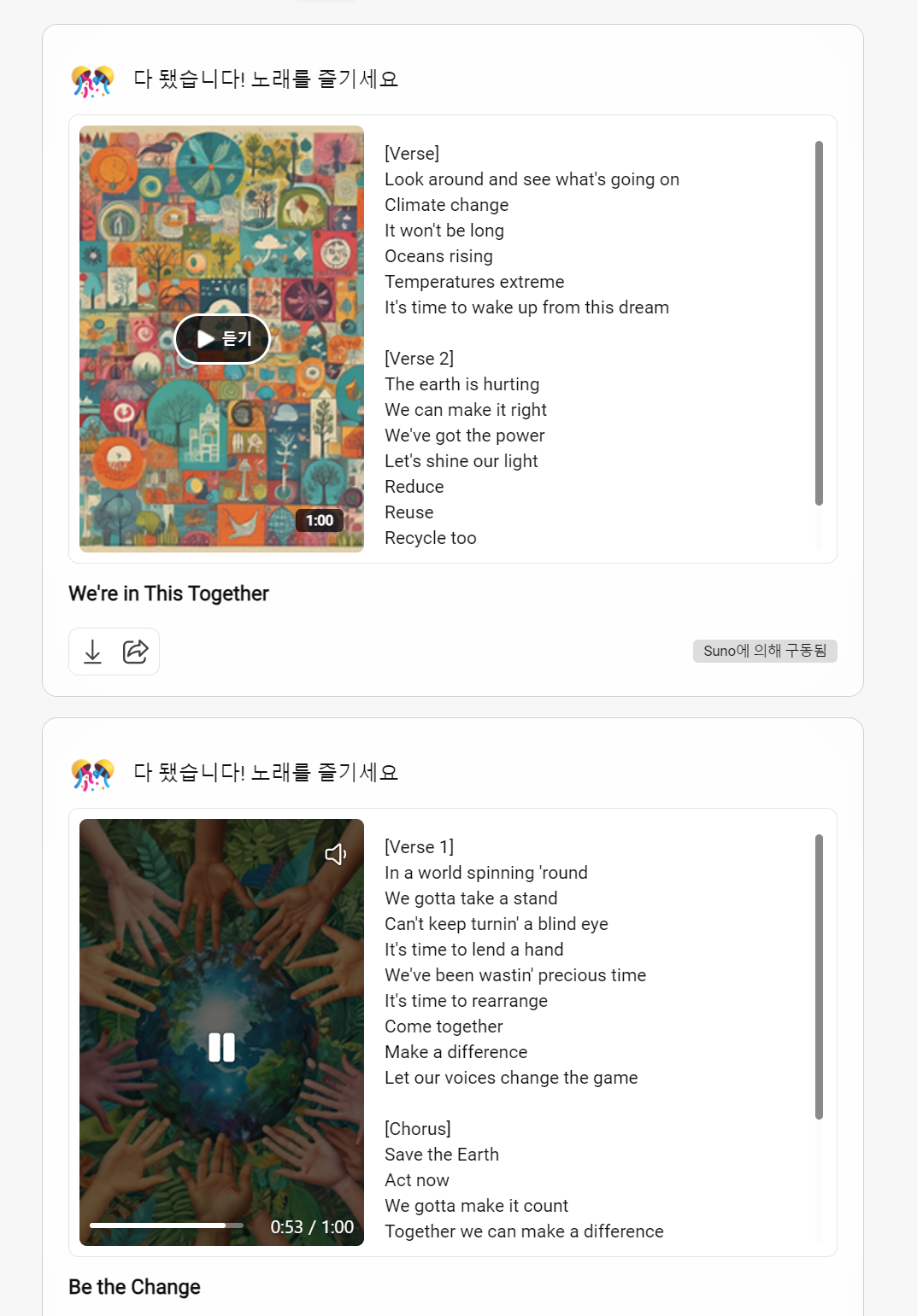 작사, 작곡 노래 생성부터 뮤직비디오 생성까지 진행 후, 유튜브에 올릴 계획인데