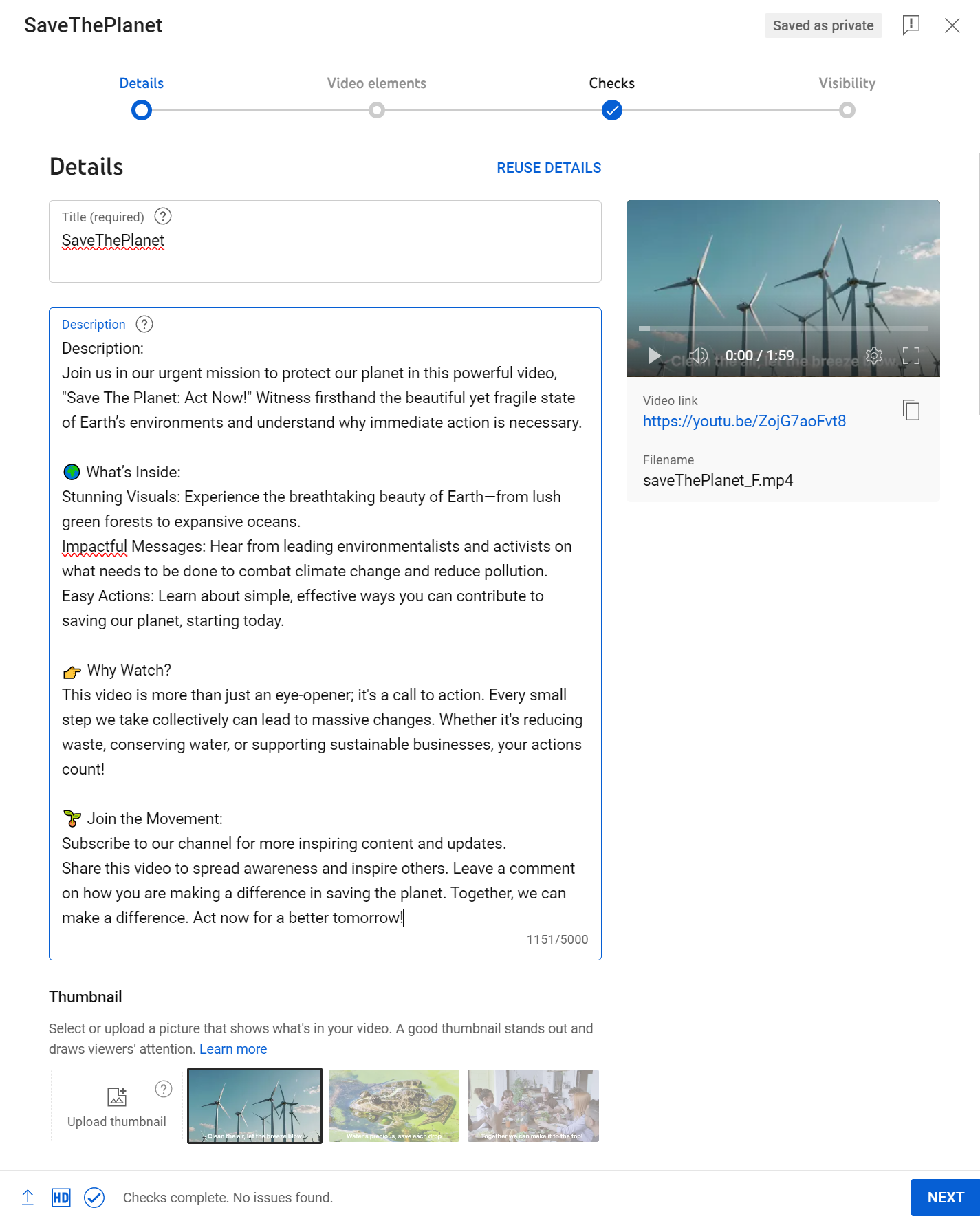 12) 영상을 유튜브에 올릴 준비를 합니다