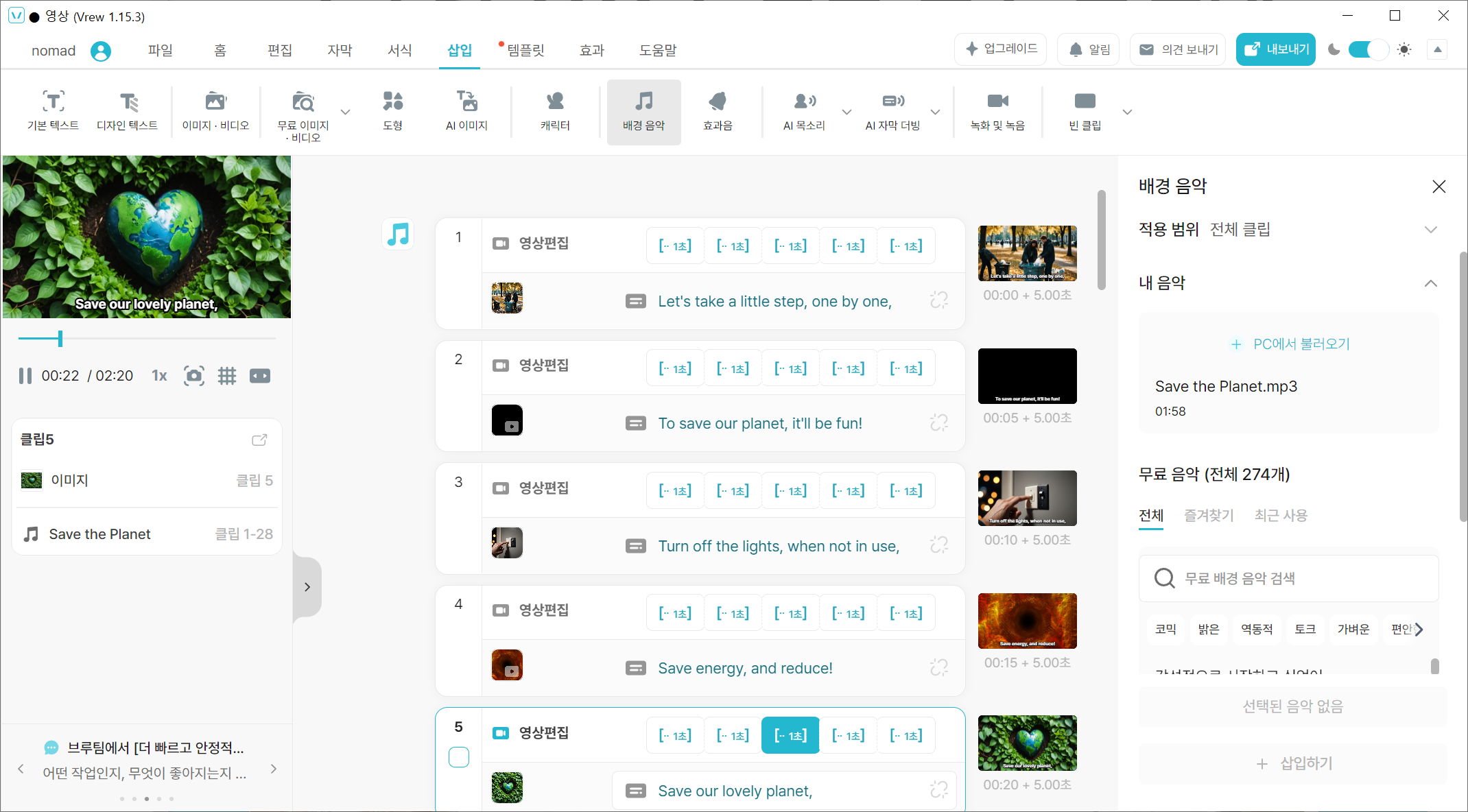 "save th earth act now를 주제로 곡을 만들자"라고 입력해 봤습니다.