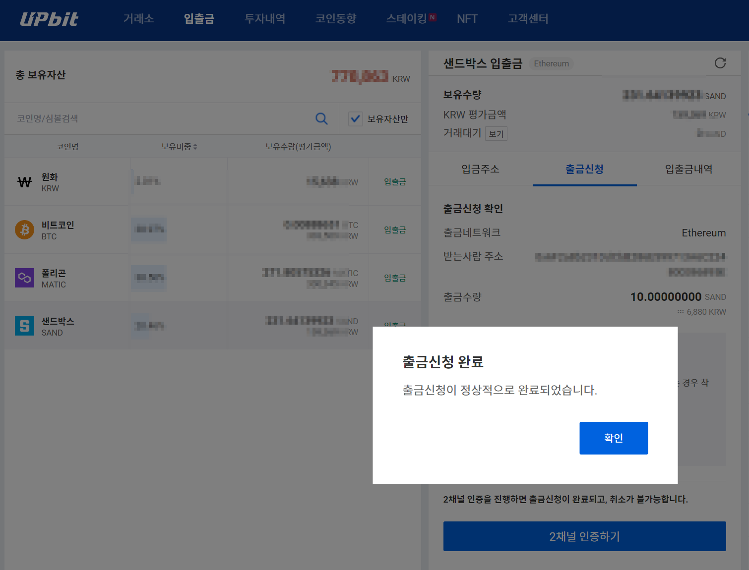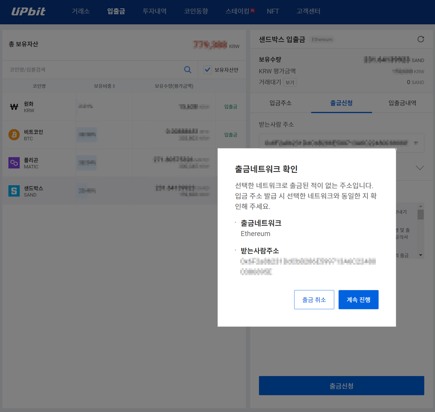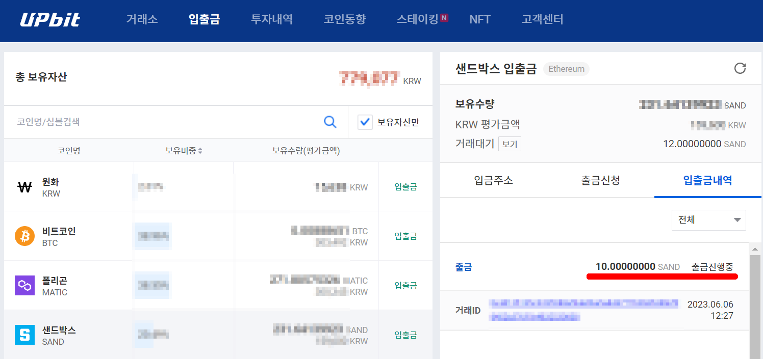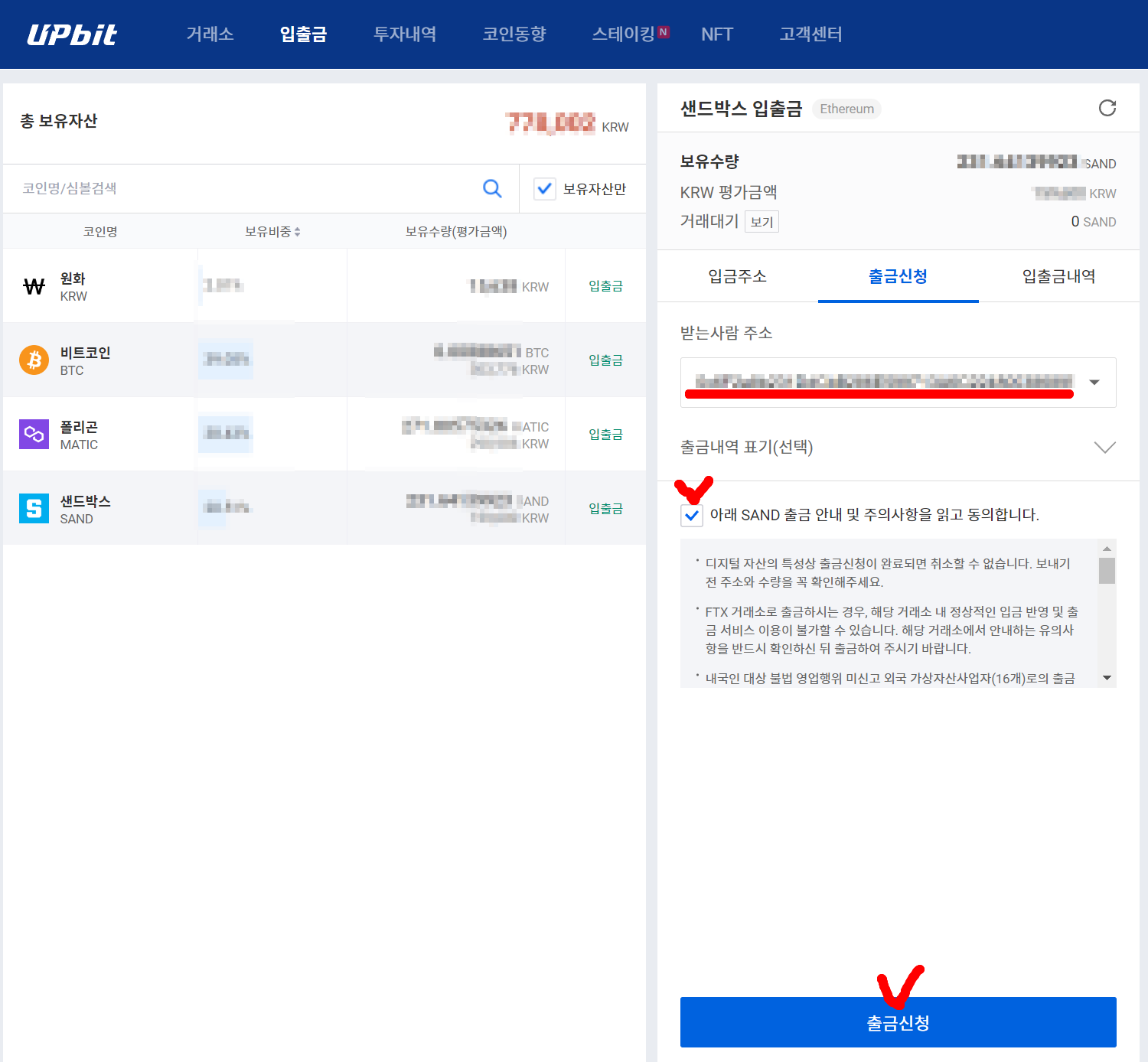 -업비트에서 메타마스크 내 지갑으로 출금 후 샌드박스에서 확인까지-