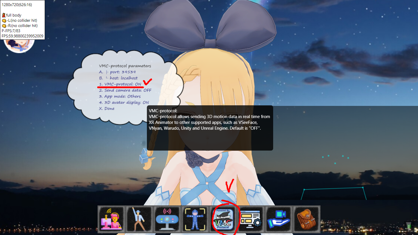 5) VseeFace 설정에서 OSC/VMC 활성화한다 (위 참조)