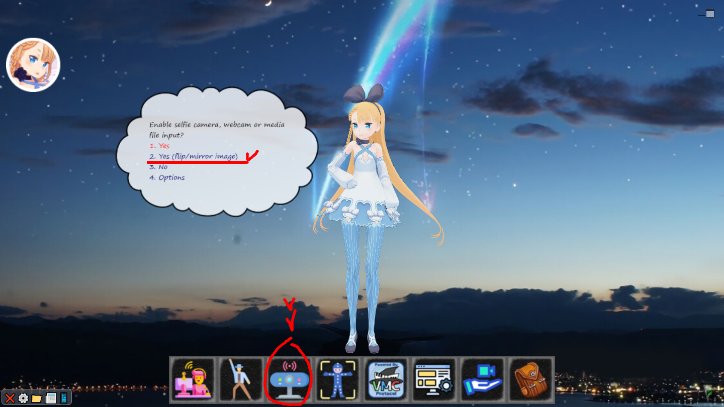 하단 세번 째 아이콘 (Webcam/Media)를 선택하면 팝업이 뜨며, "2.Yes(flip/mirror image)" 클릭합니다.