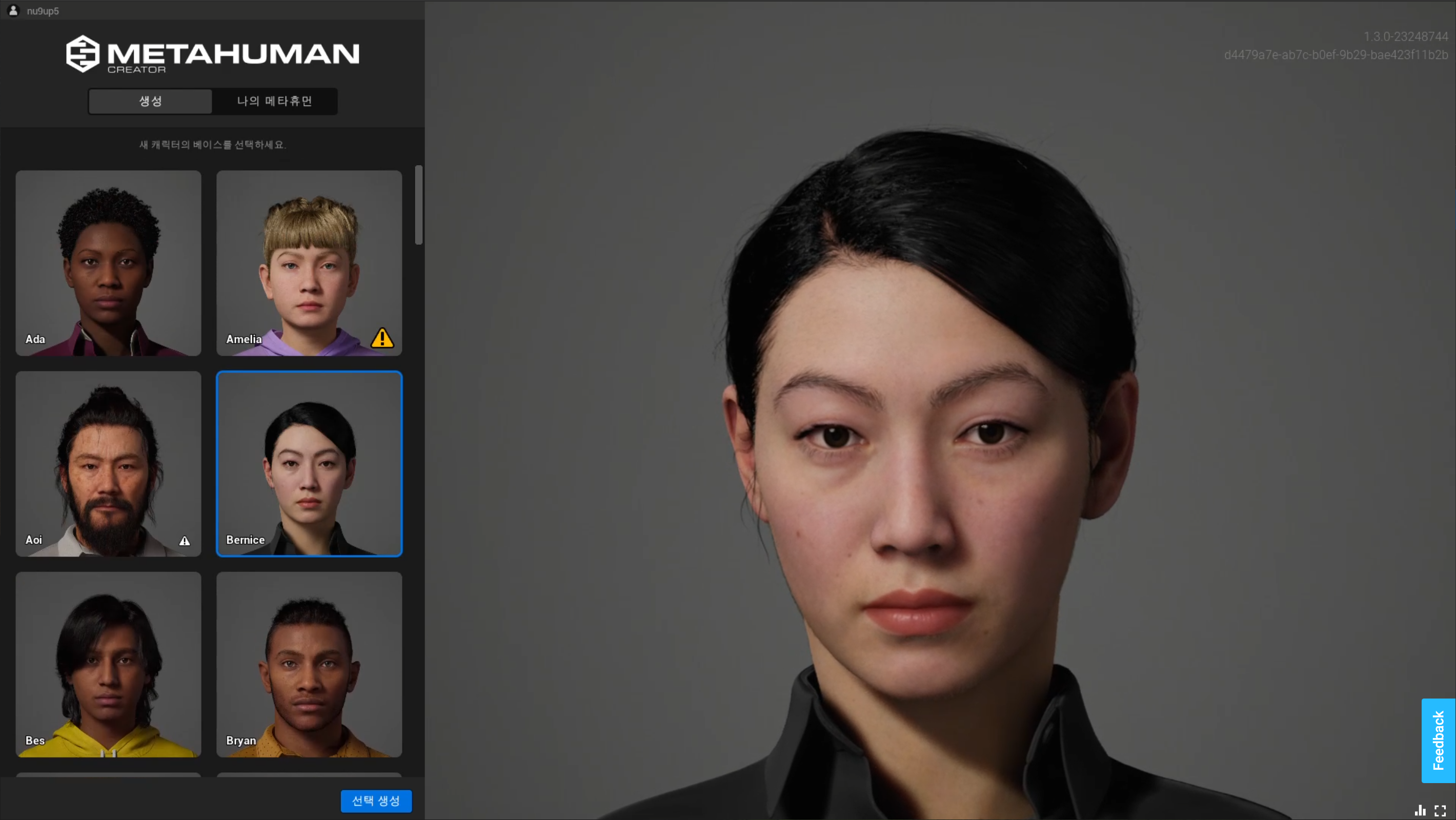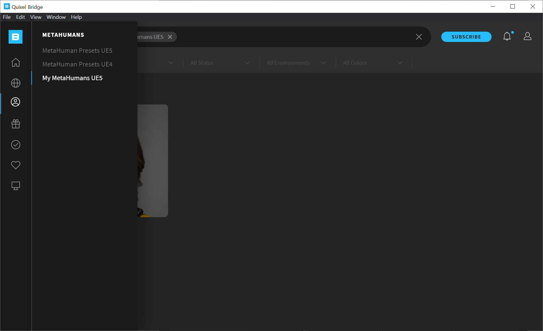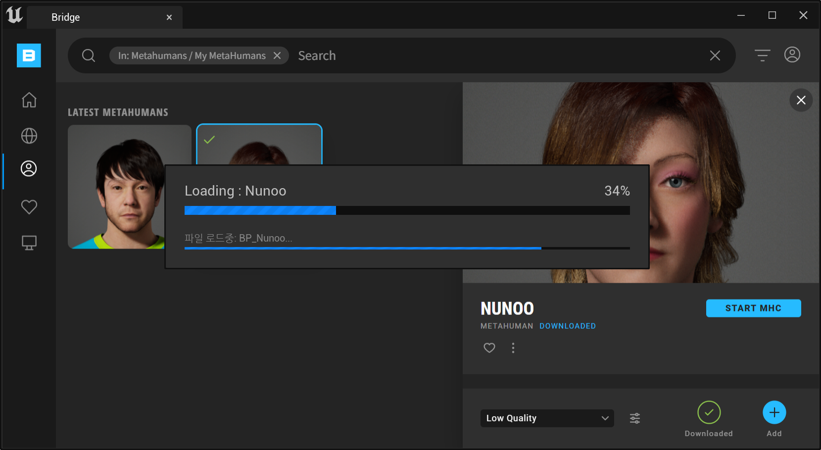 3) 좌측 아이콘 세번째 메뉴 프로필 모양 선택 > My Metahuman UE5 항목 선택