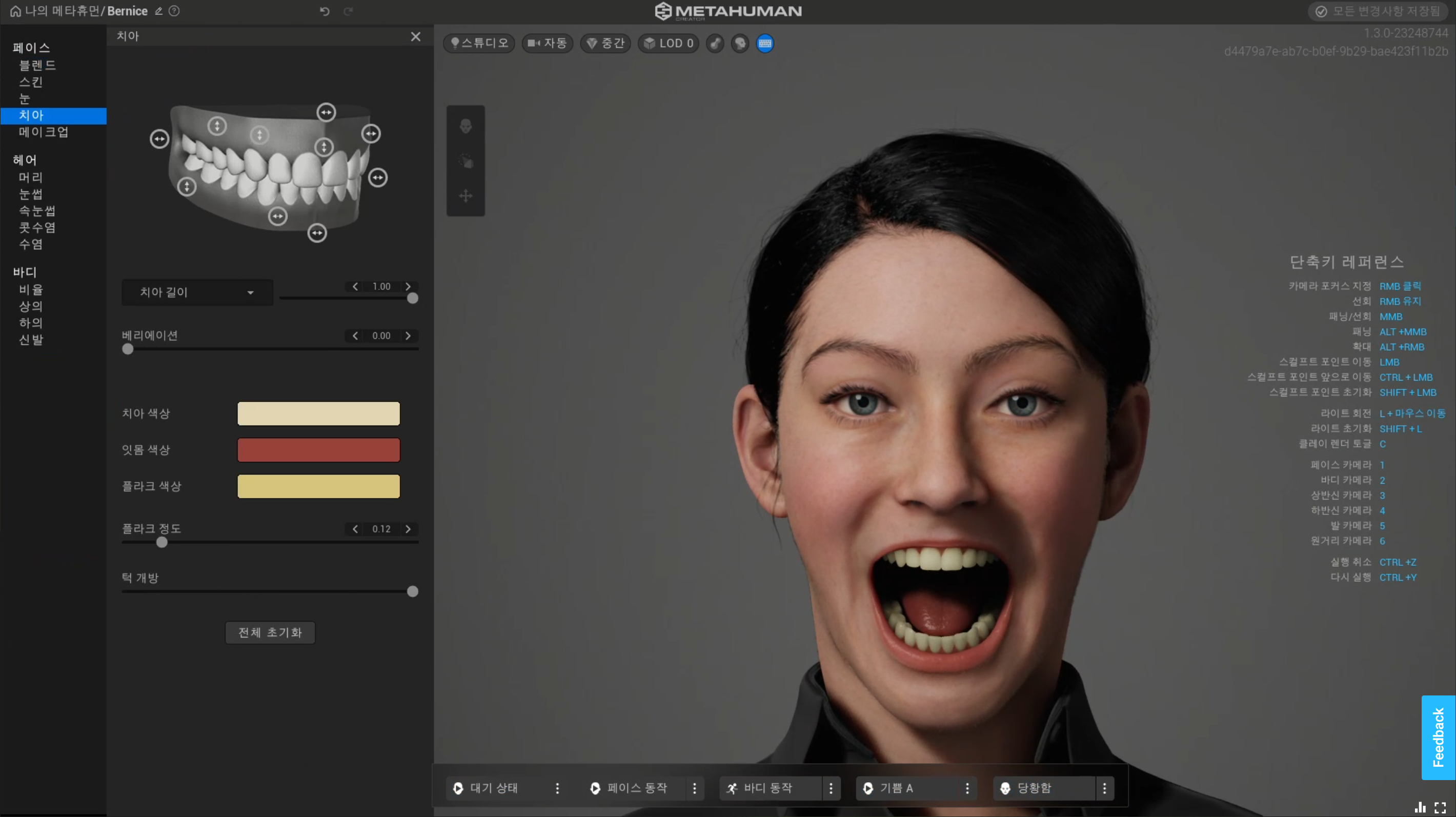 8) 눈, 치아, 메이크업(파운데이션, 눈터치, 볼터치, 입술)을 조절