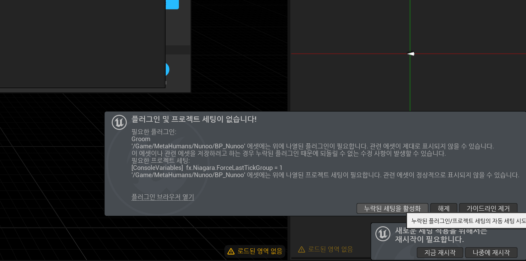 5) 에러가 뜨면 누락된 세팅을 활성화 한다음 재시작!