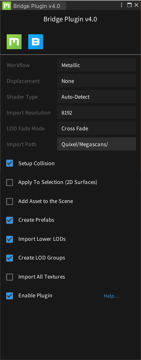 > 패키지 위치는 quixel/ support 내에서 찾기
