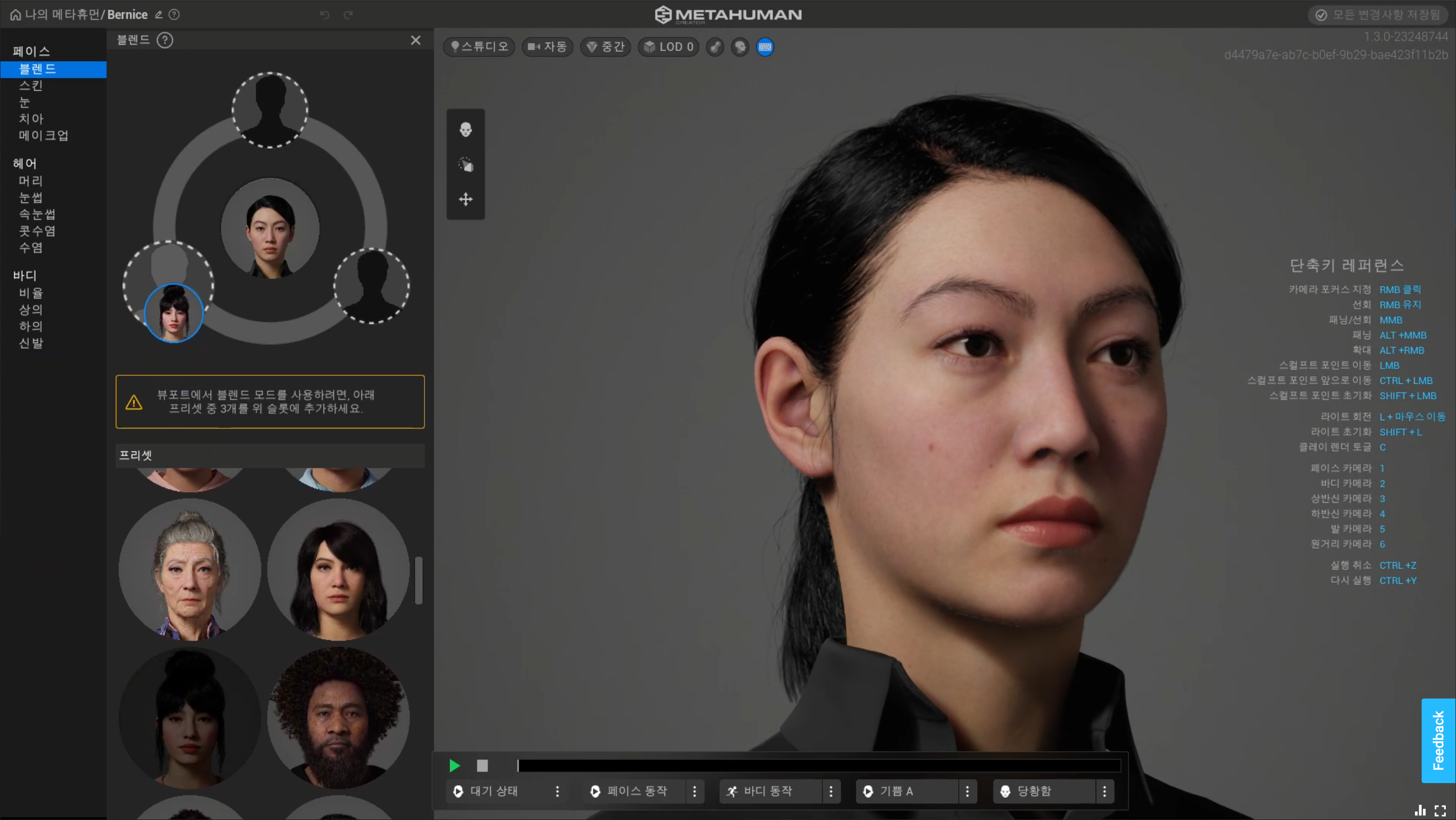 5) 얼굴의 각 부위를 선택하여 3가지 얼굴 중 원하는 스타일로 변경