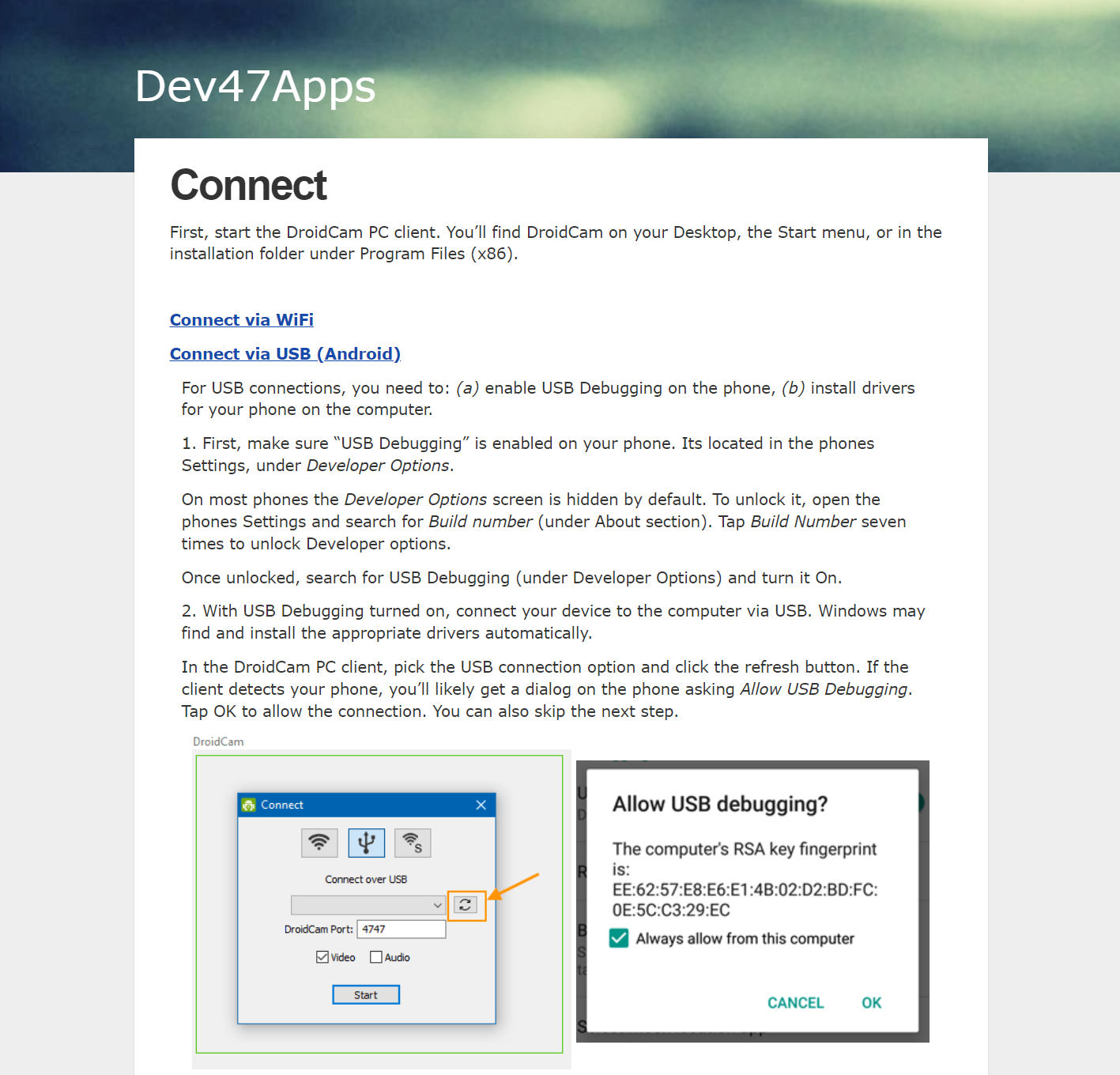 DroidCam 페이셜 연결