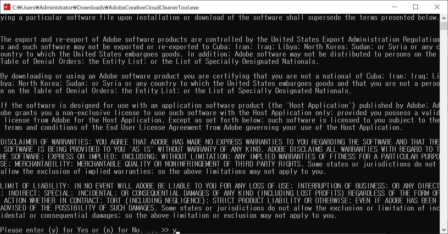 2. AdobeCreativeCloudCleanerTool 실행, CMD 창이 아래와 같이 뜹니다.