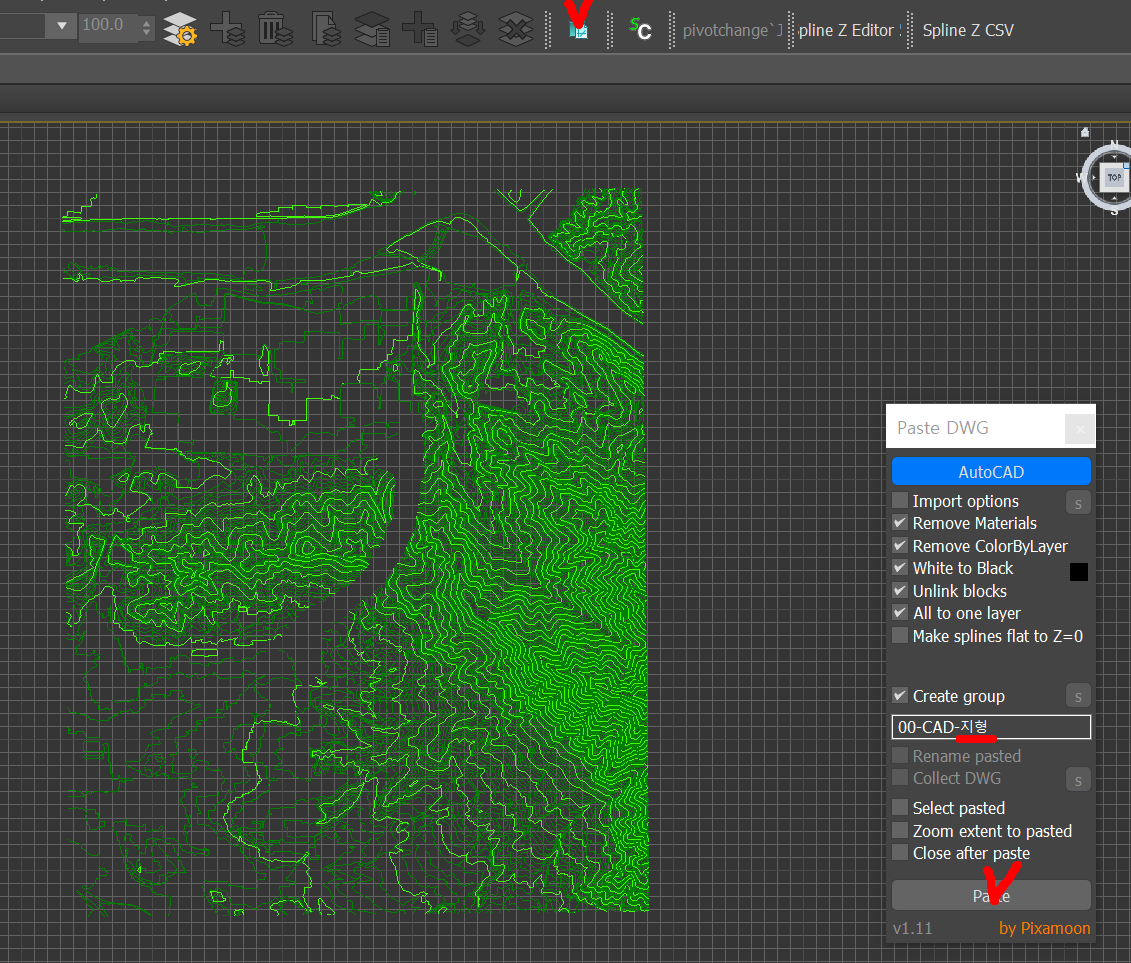 1) Max 에서 스크립트 "Copy Paste DWG" 실행, Paste!