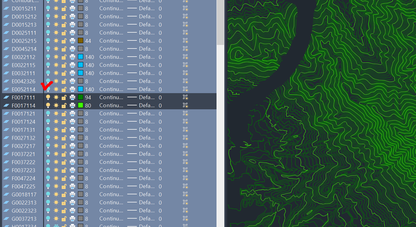 1) @등고선_500 객체를 선택