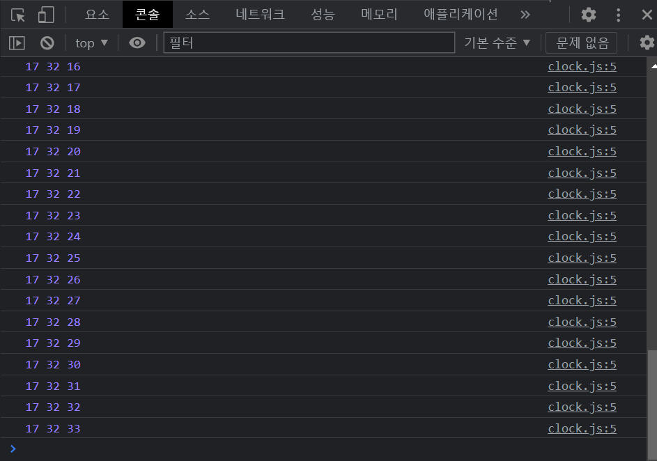현재 시계 관련 코드를 clock.js에 작성하고 있다.