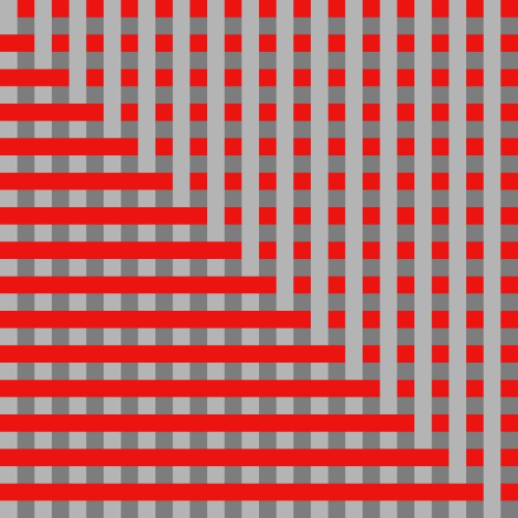 자, 이렇게 두께 20 px의 사각형을 가로 세로로 한 번씩 그려가는 것을 40px 간격으로 반복시킨 결과물이 보이네요.