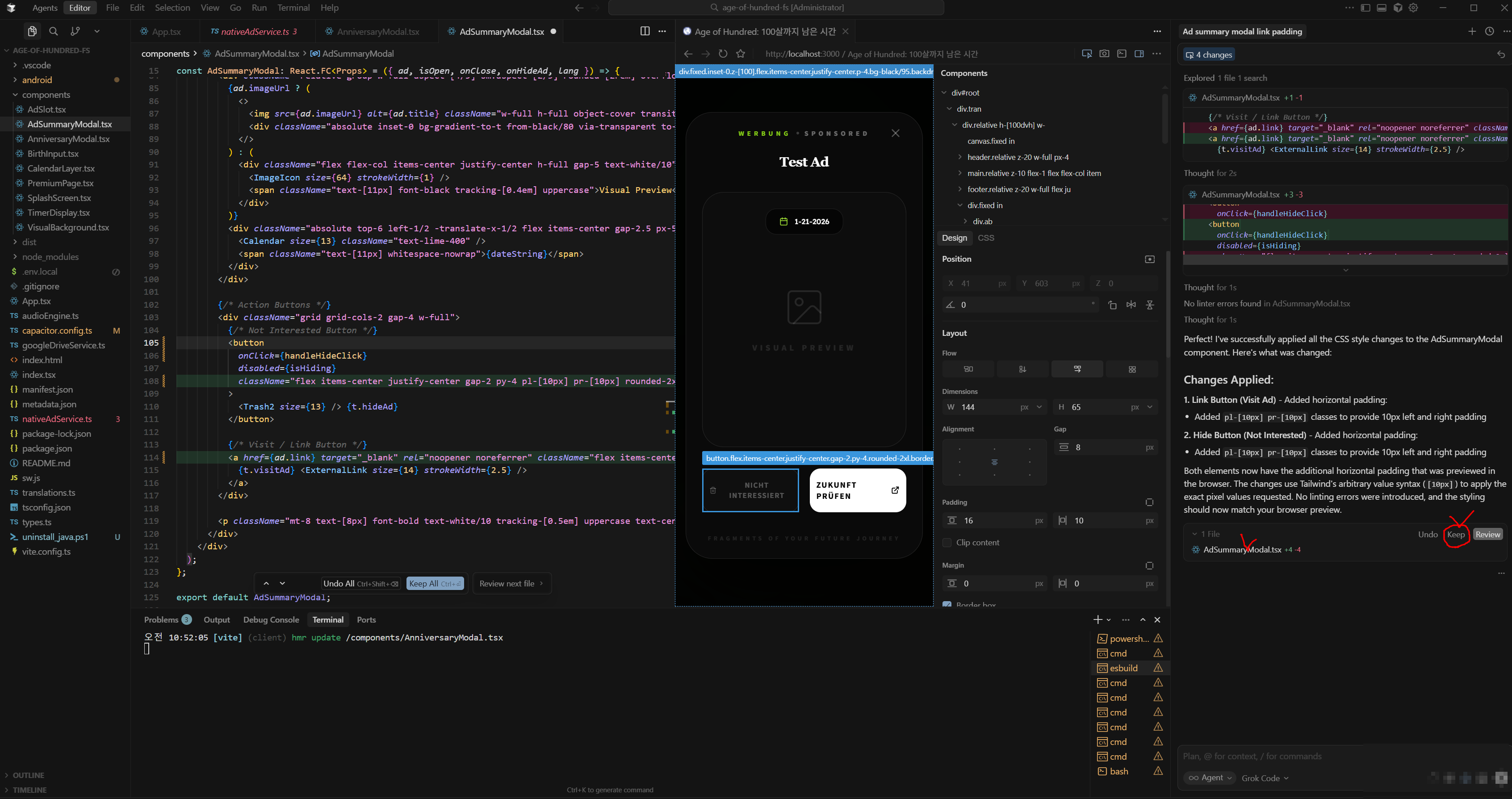 - Cursor Terminal에서 npm run dev 실행후
