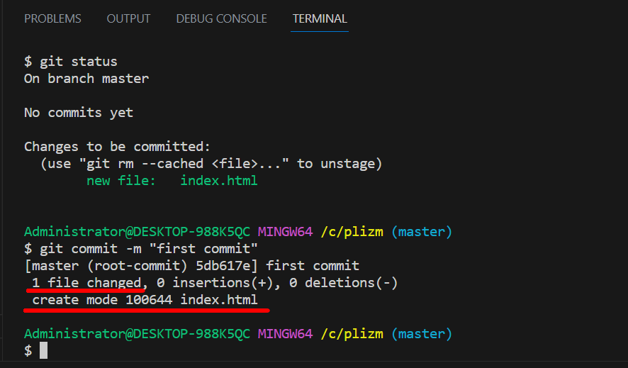 git commit -m "first commit"