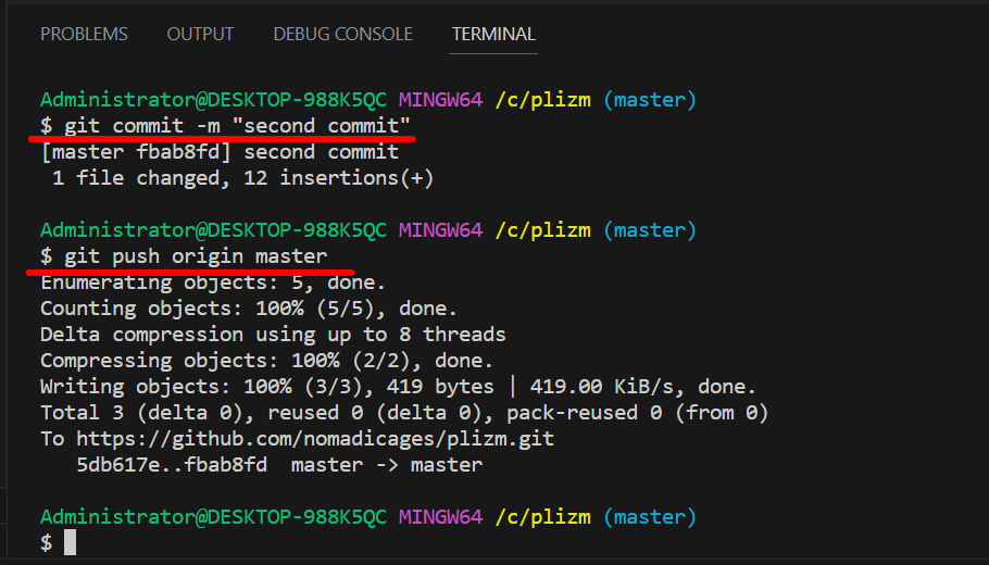 git commit -m "second commit"