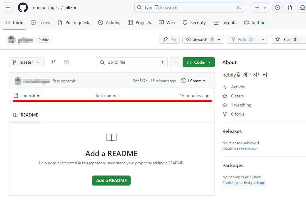 이제 처음 내가 만든 html파일을 깃허브에 올렸으며,