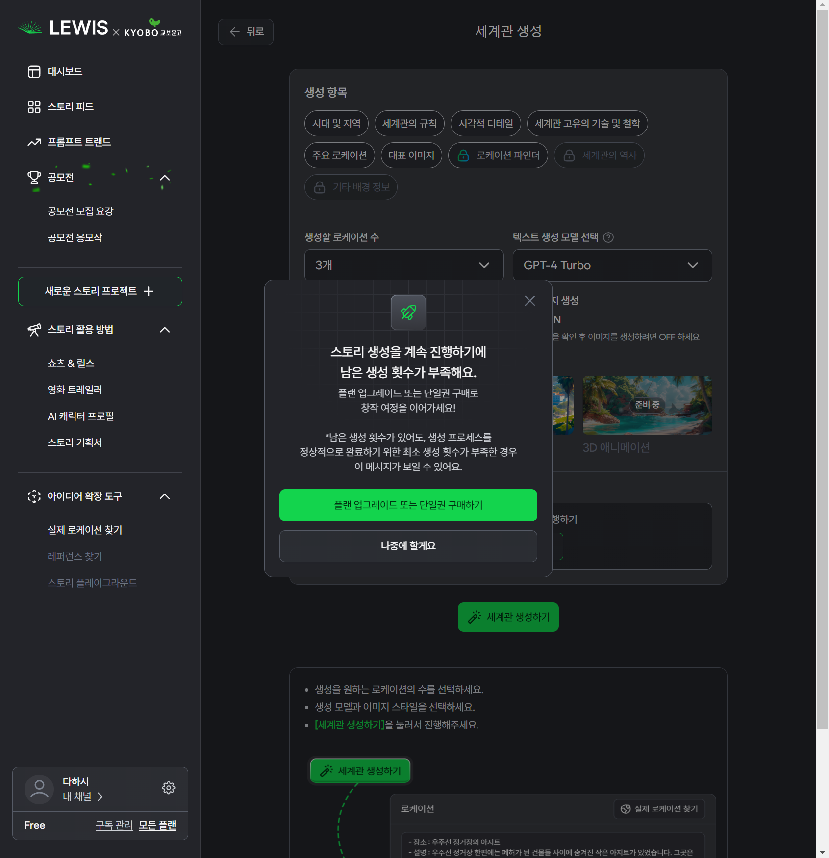 14. 플롯 수정이 완성되면, 세계관을 생성합니다.