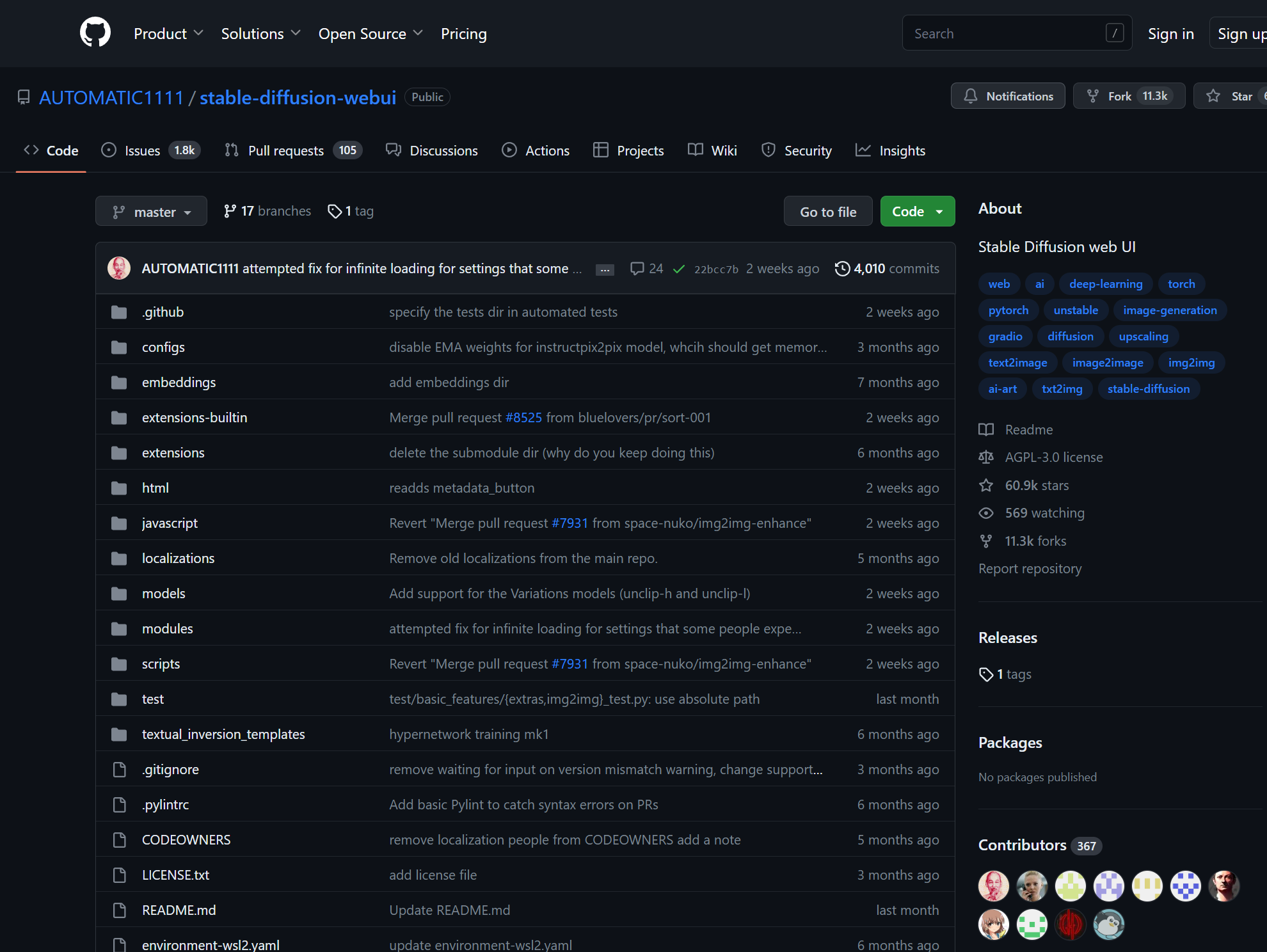 깃허브 주소 : https://github.com/AUTOMATIC1111/stable-diffusion-webui