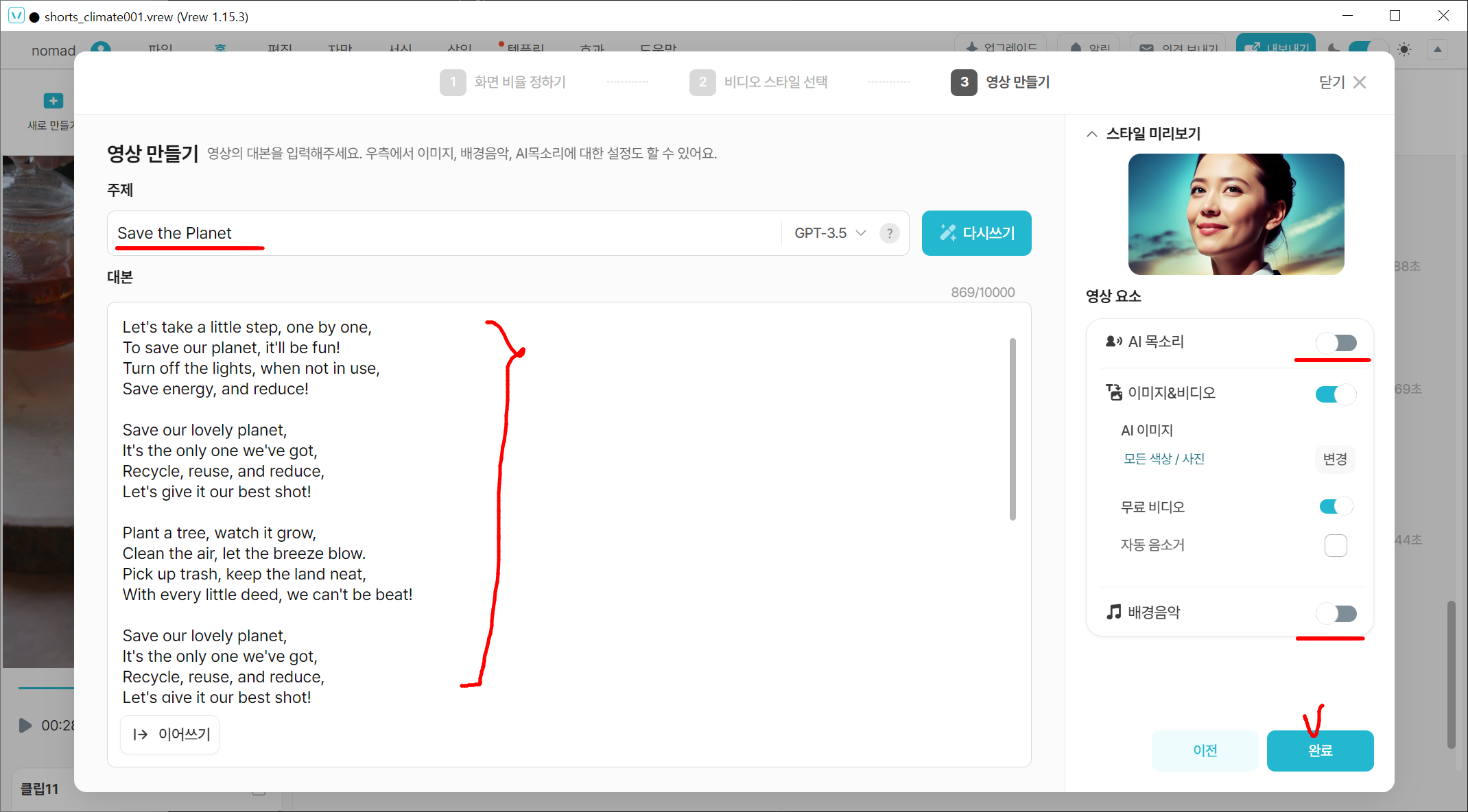 3) 비디오 생성하기 : Vrew