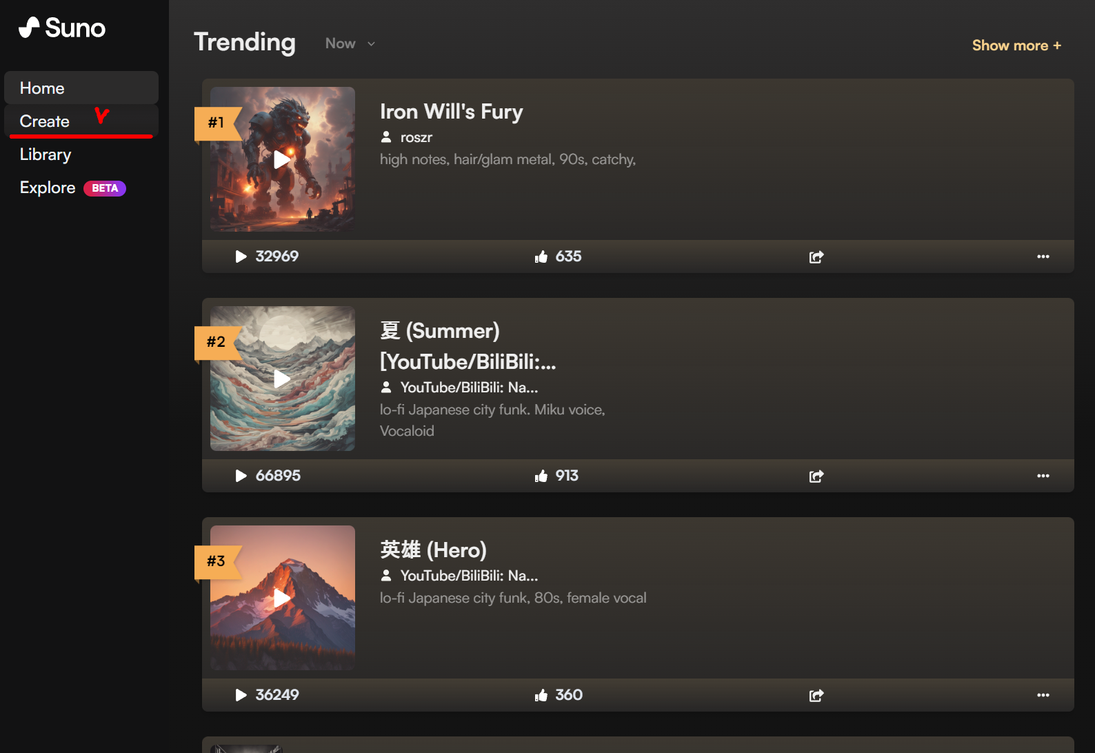 1. Suno.ai 사이트로 이동합니다.