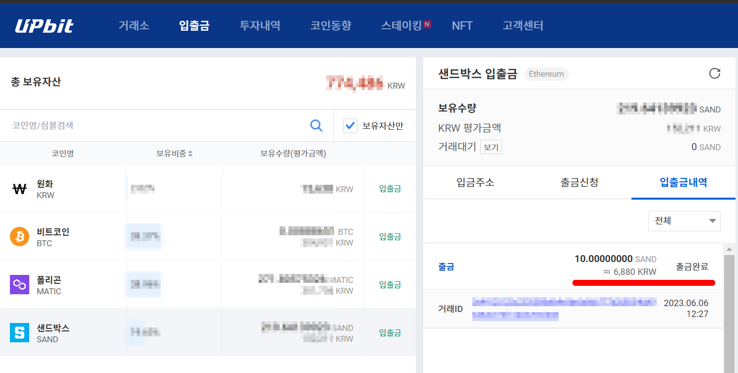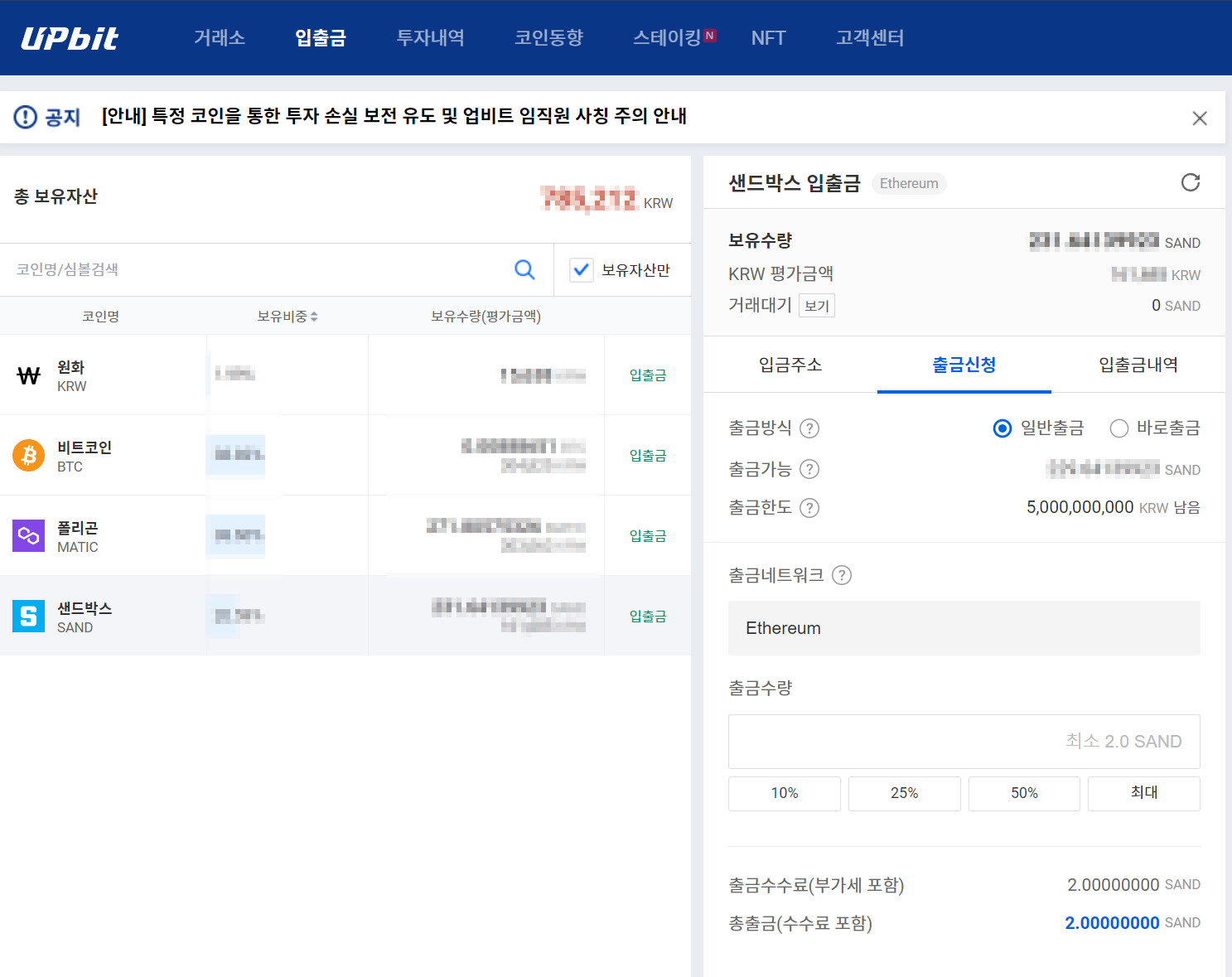 -업비트에서 메타마스크 내 지갑으로 출금 후 샌드박스에서 확인까지-